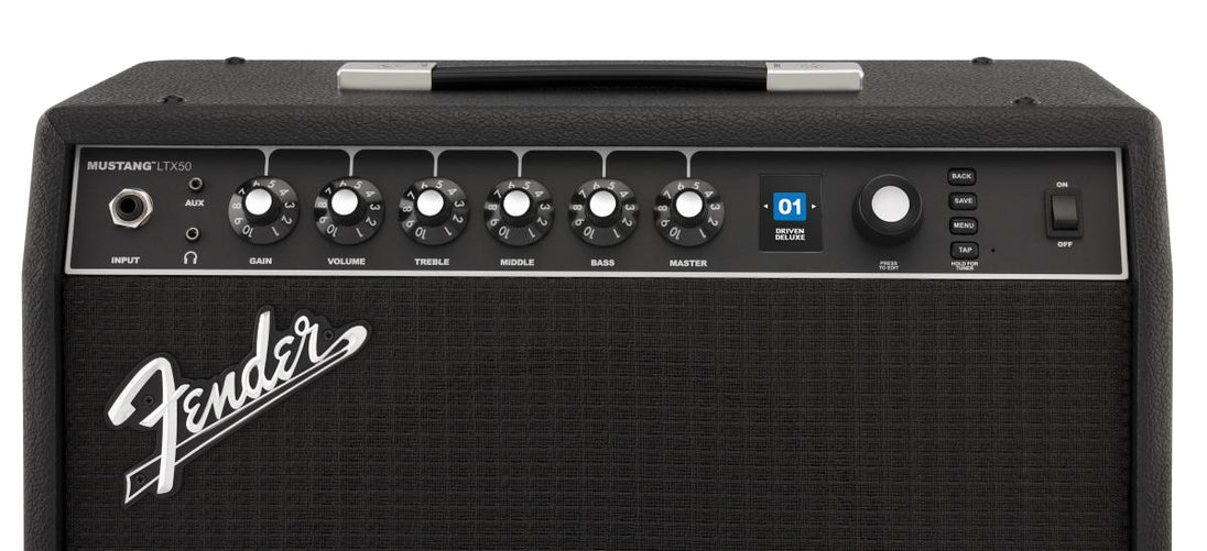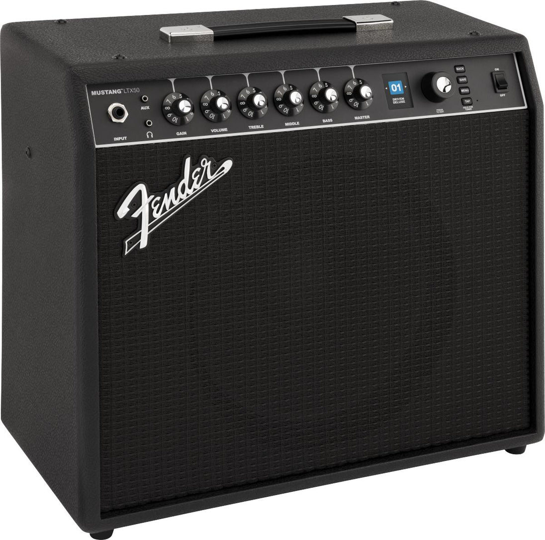 The Fender Mustang LTX50 combines advanced technology with classic Fender style, offering guitarists at any skill level a versatile and powerful amp. Featuring 50 amp and effect models, 100 customizable presets, and a configurable signal path, it delivers a wide range of tones for diverse musical styles. Its intuitive interface and integrated color display simplify operation, while the 12" Celestion G12P-80 speaker ensures rich sound quality. With onboard Bluetooth, users can jam along with tracks and manage presets via the Fender TONE app, making the Mustang LTX50 an ideal choice for both practice and live performance.
