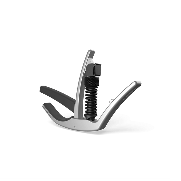 The patented Tri-Action Capo reduces the force required to open and close this high quality guitar capo, and applies even tension regardless of neck profile. Combined with the micrometer tension adjustment and direct horizontal pressure, the Tri-Action Capo virtually eliminates pulling the strings side to side and the need to retune during use. The sleek aircraft grade aluminum construction of this premium capo can withstand the toughest playing/touring schedule while adding negligible additional weight or obstruction to the instrument. Also available in silver.