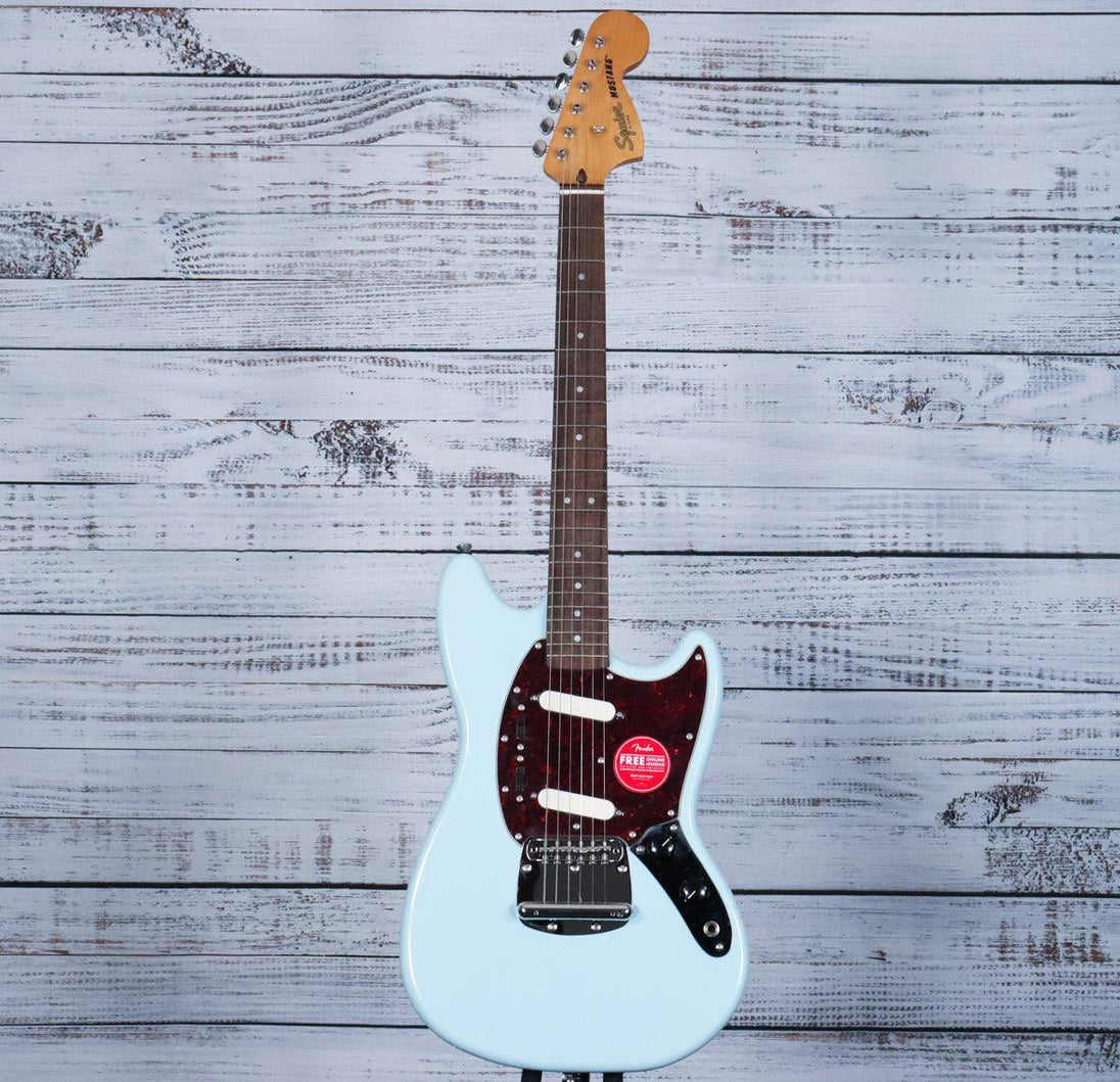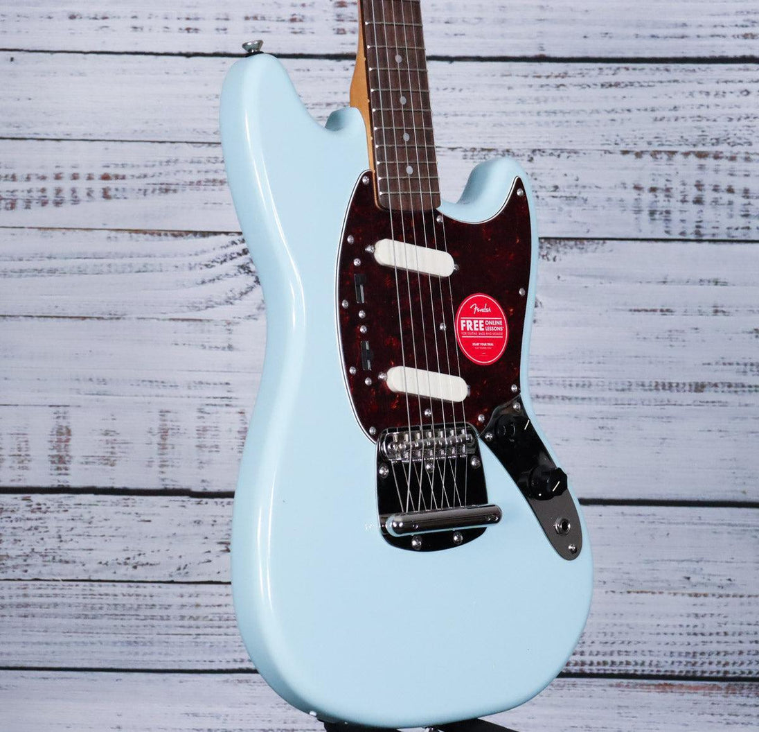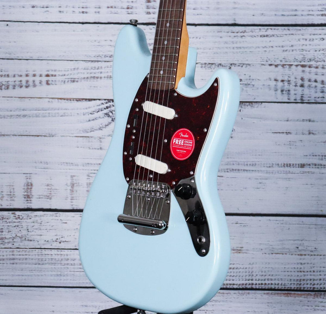 While small in stature, the Classic Vibe ‘60s Mustang packs a punch of incredible tone courtesy of the dual Fender-Designed alnico single-coil pickups. Small hands will appreciate the short 24” scale length and slim, comfortable “C”-shaped neck profile with an easy-playing 9.5”-radius fingerboard and narrow-tall frets. This Mustang is faithful to the original, with a vintage-style tremolo system for expressive string bending effects and floating bridge with barrel saddles. This throwback Squier model also features 1960s inspired headstock markings, nickel-plated hardware and a slick vintage-tinted gloss neck finish for an old-school aesthetic vibe.