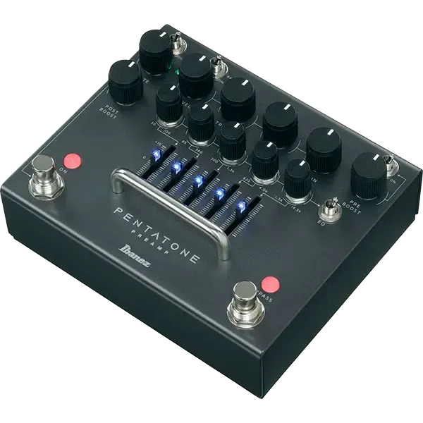 The Pentatone Preamp by Ibanez combines five dedicated tone shaping sections into one versatile unit. It starts with a pre boost, allowing you to add that extra touch of gain and presence to your signal. Next up is the distortion section, complete with a two-band EQ for sculpting your tone precisely to your liking. The built-in noise gate ensures a clean and noise-free experience, even at high gain settings. Additionally, the 5-band parametric EQ provides unprecedented control over your sound, allowing you to fine-tune each frequency range to perfection. Finally, the post boost feature gives you an extra push when you need it most.