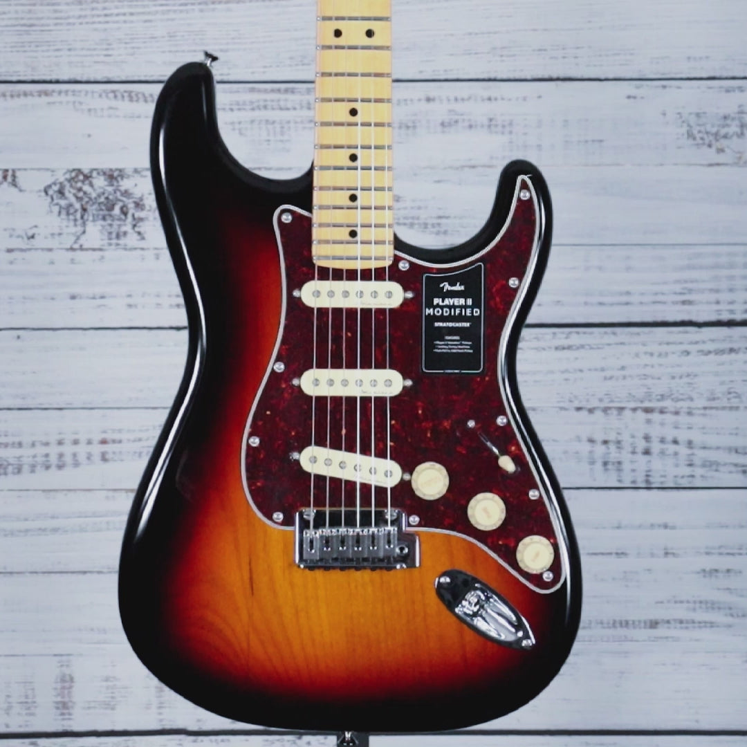 Upgrade your performance with the Player II Modified Stratocaster®. A versatile, modern classic, designed for fast and fluid playability. The Modern “C”-profile neck and 9.5”-radius slab rosewood/maple fingerboard provide a comfortable experience with 22 medium jumbo frets. Complete with alder body, noiseless™ pickups and exciting new finishes.