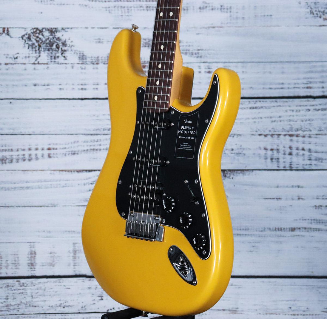 Upgrade your performance with the Fender Player II Modified Stratocaster® HSS. Designed for modern guitarists, this versatile instrument features a fast and fluid neck with a silky satin finish, comfortable fingerboard, and punchy alder body. The Player II Modified humbucker allows for articulate and powerful sound.