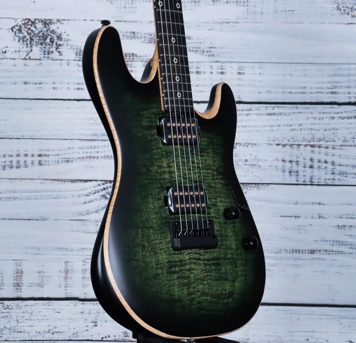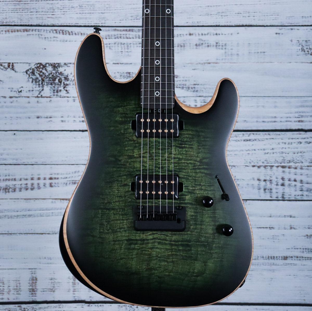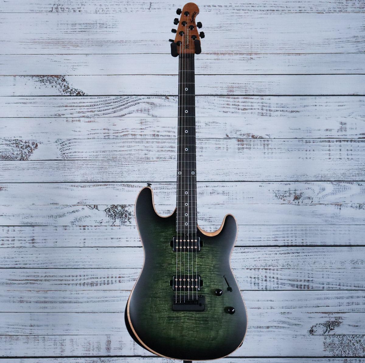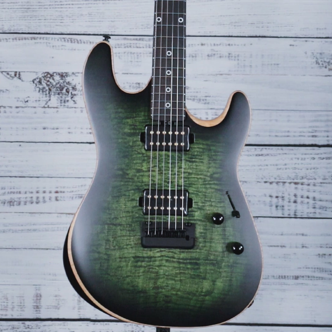 The Rabea Massaad Artist Series Sabre guitar is designed for ultimate performance with custom features tailored to guitarist Rabea Massaad's unique style. With a thicker tapered neck and recessed carves on the front and back, this guitar offers comfort and easy access to higher frets. The signature Bare Knuckle "Silo" humbuckers and push-push split-coil electronics provide versatile tone options.
