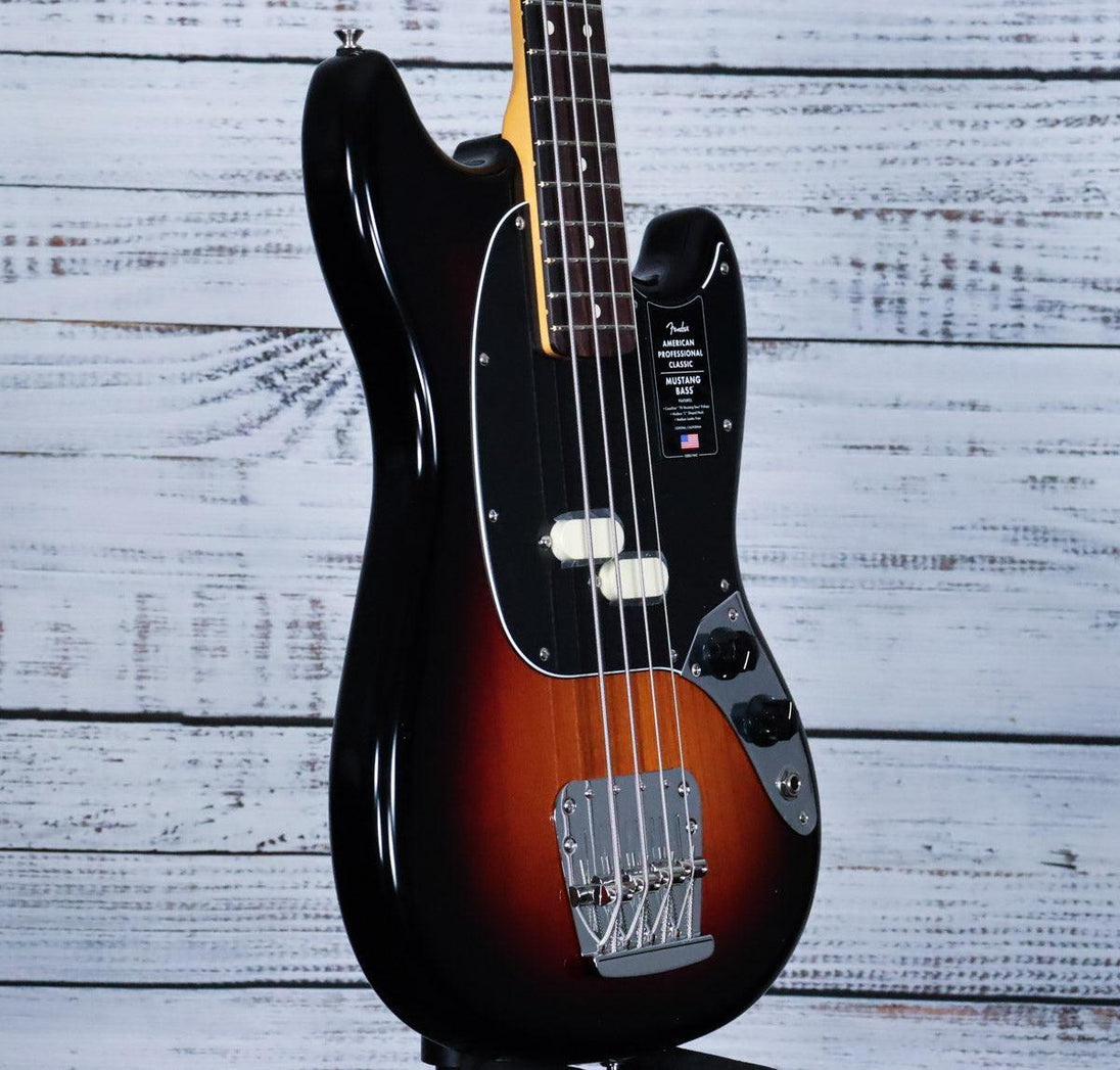 The Fender American Professional Classic Mustang Bass perfectly combines vintage style with modern playability. Featuring the Coastline™ 70's Mustang split-coil pickup, it delivers rich tone, punch, and clarity. The comfortable Modern "C" neck and precise Fender 'lollipop' tuners ensure smooth performance and stable tuning. With its custom-faded vintage finish and iconic Fender design, this bass is a professional-grade instrument ready to shine on stage or in the studio. Experience the timeless sound and feel of a classic Fender, updated for today’s musician.