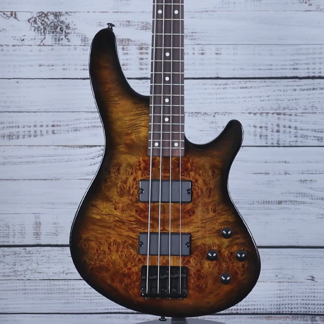 - Body Material: Mahogany body w/Figured Burl Top, Black Single-Ply Binding