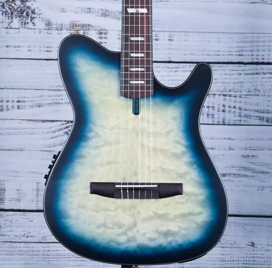 The Ibanez FRH20QMNTCL blends nylon-string warmth with electric guitar-like playability. Its slim, compact body and narrow 46mm nut ensure comfortable play, while the 400R fretboard radius offers smooth high-fret access. Without a traditional sound hole, it...Regular price $ 649.99Regular price $ 649.99 -
