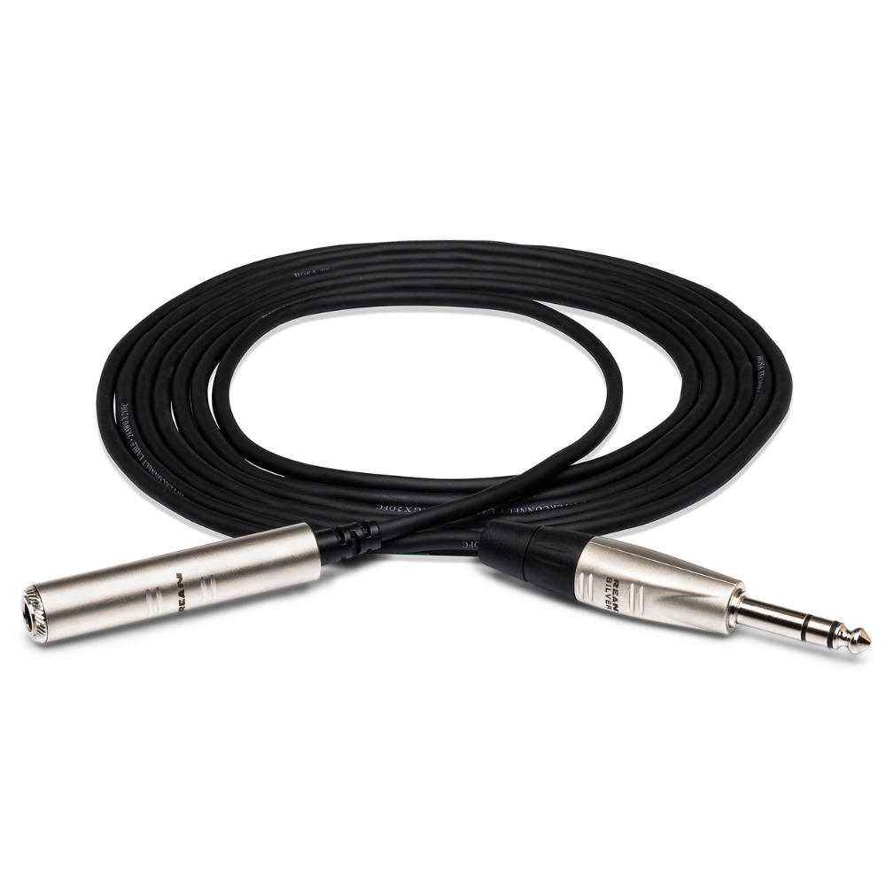 This professional-grade headphone extension cable features REAN 1/4" TRS connectors on both ends, delivering reliable audio transmission for studio and live sound applications. The 5-foot length provides convenient reach without signal degradation, making it ideal for extending headphone cables or serving as a stereo line extension. Built with Hosa's quality construction for durability and consistent performance in demanding environments.