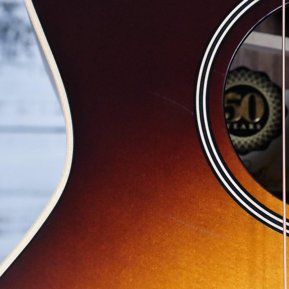Celebrate five decades of Taylor history with the limited edition 50th Anniversary AD14ce-SB. The Sitka spruce/walnut tonewood pairing delivers warm, woody tones with improved volume and sustain from the V-Class bracing. Featuring a neo-vintage design with chamfered edges and a hand-sprayed tobacco sunburst top, this Grand Auditorium is perfect for any style of playing.