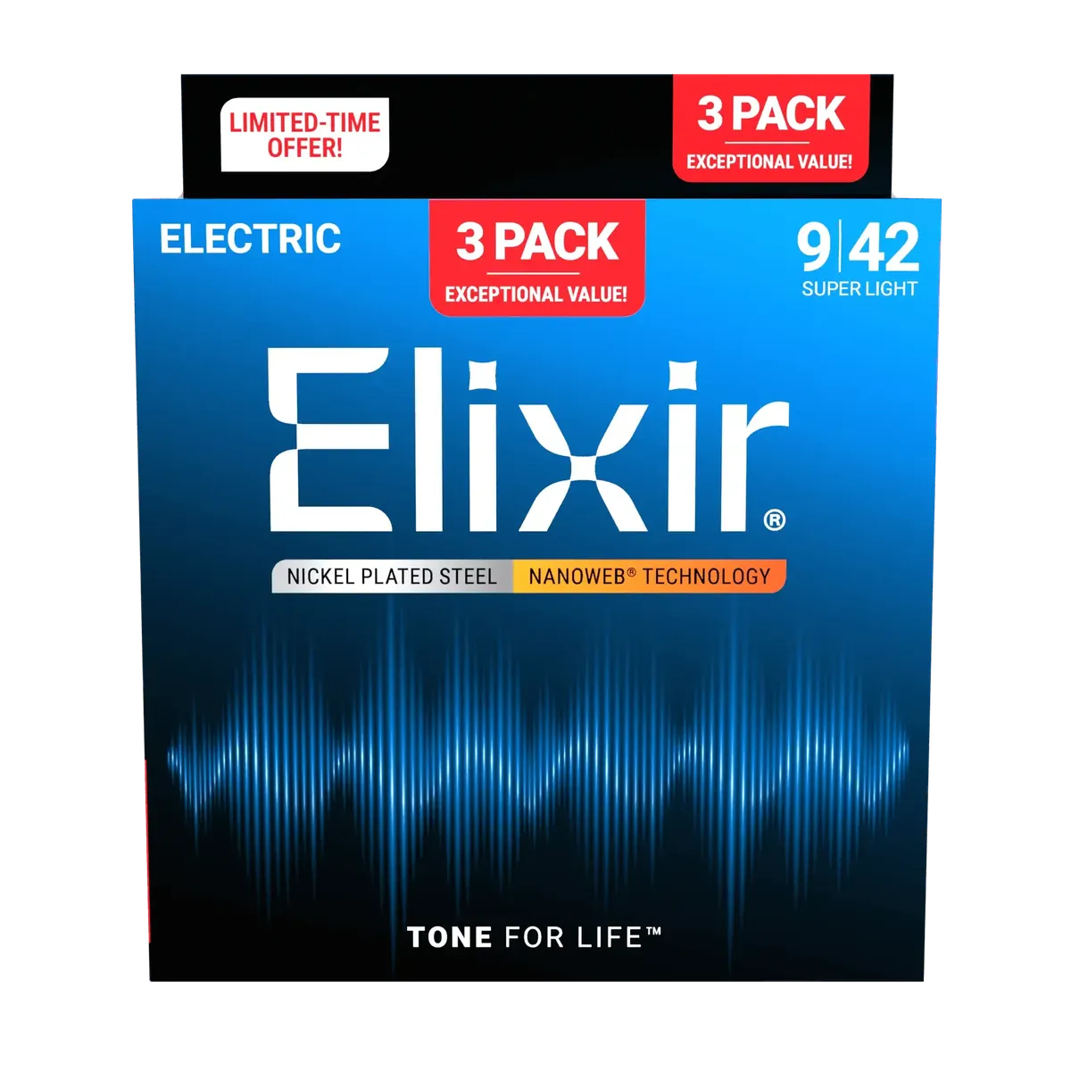 Elixir Nanoweb Coated Electric Guitar Strings | Super Light | 9-42