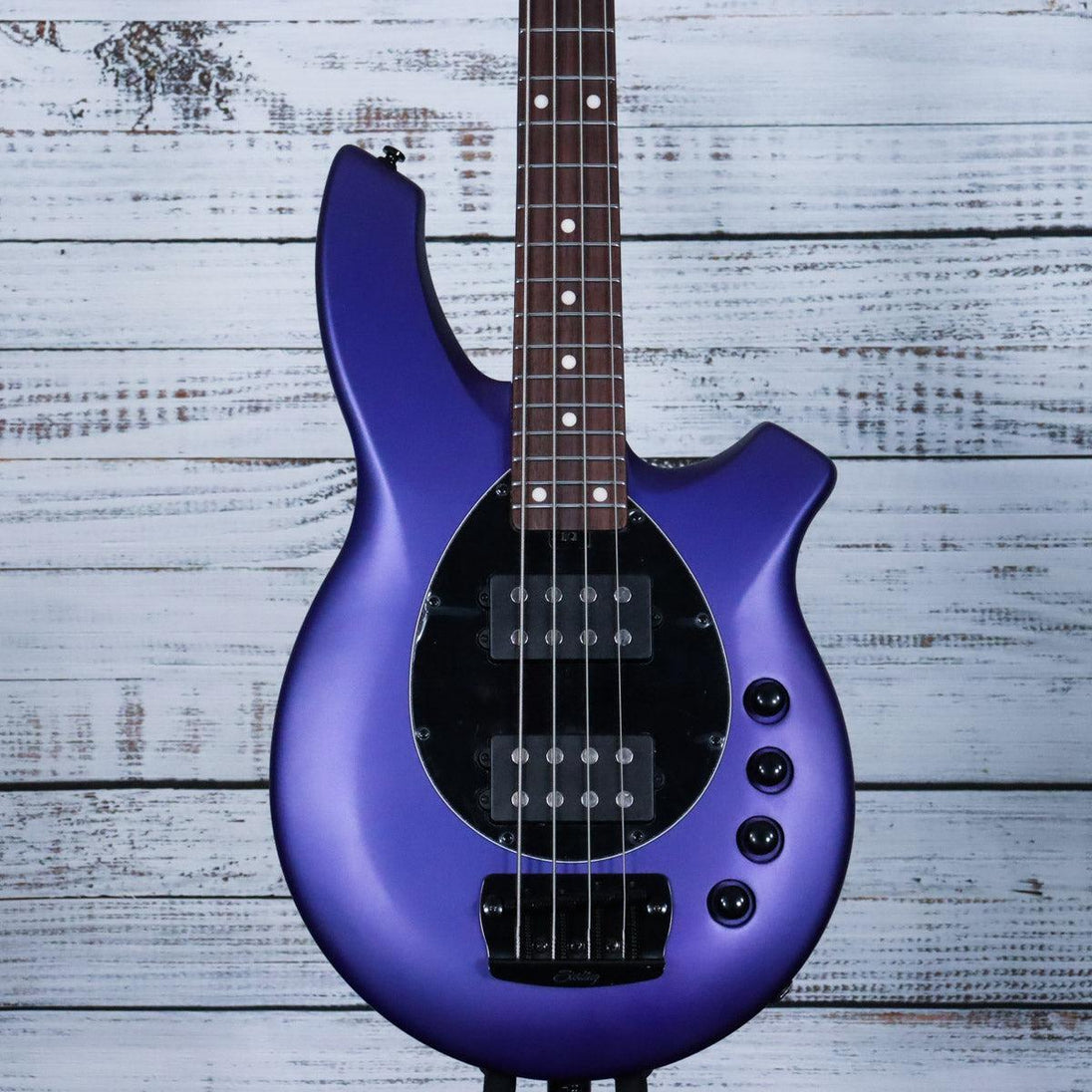 The Sterling Bongo 4-string Bass in Firemist Purple Satin combines iconic Music Man design with advanced tonal versatility. Its sleek, contoured body and deep cutaways provide smooth upper-fret access, while the HH pickup configuration, blend control, and 2-band EQ deliver powerful lows, clear highs, and precise sound shaping. Available in a striking Firemist Purple Satin finish with a matching headstock, this bass is built to meet the demands of professional musicians seeking both style and performance.