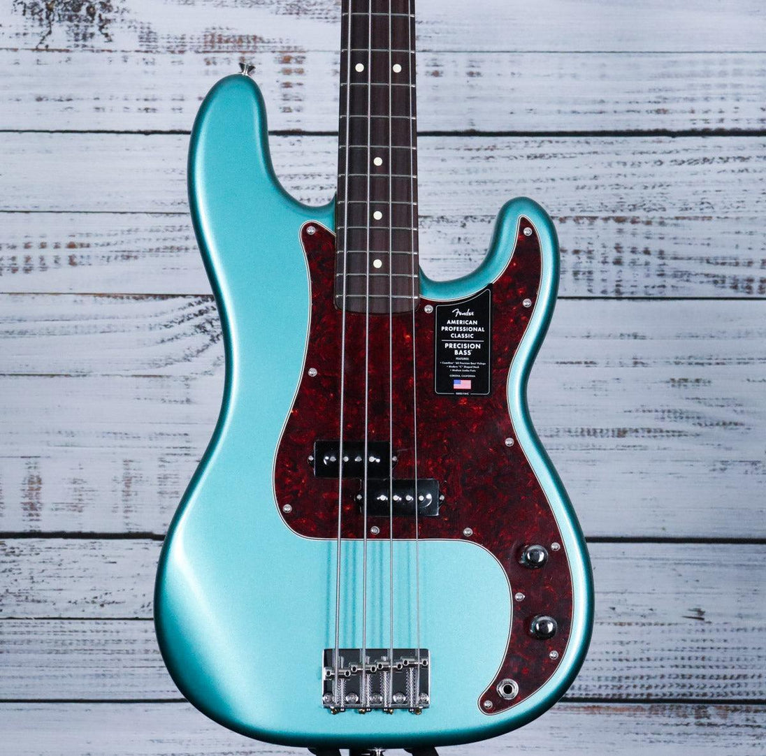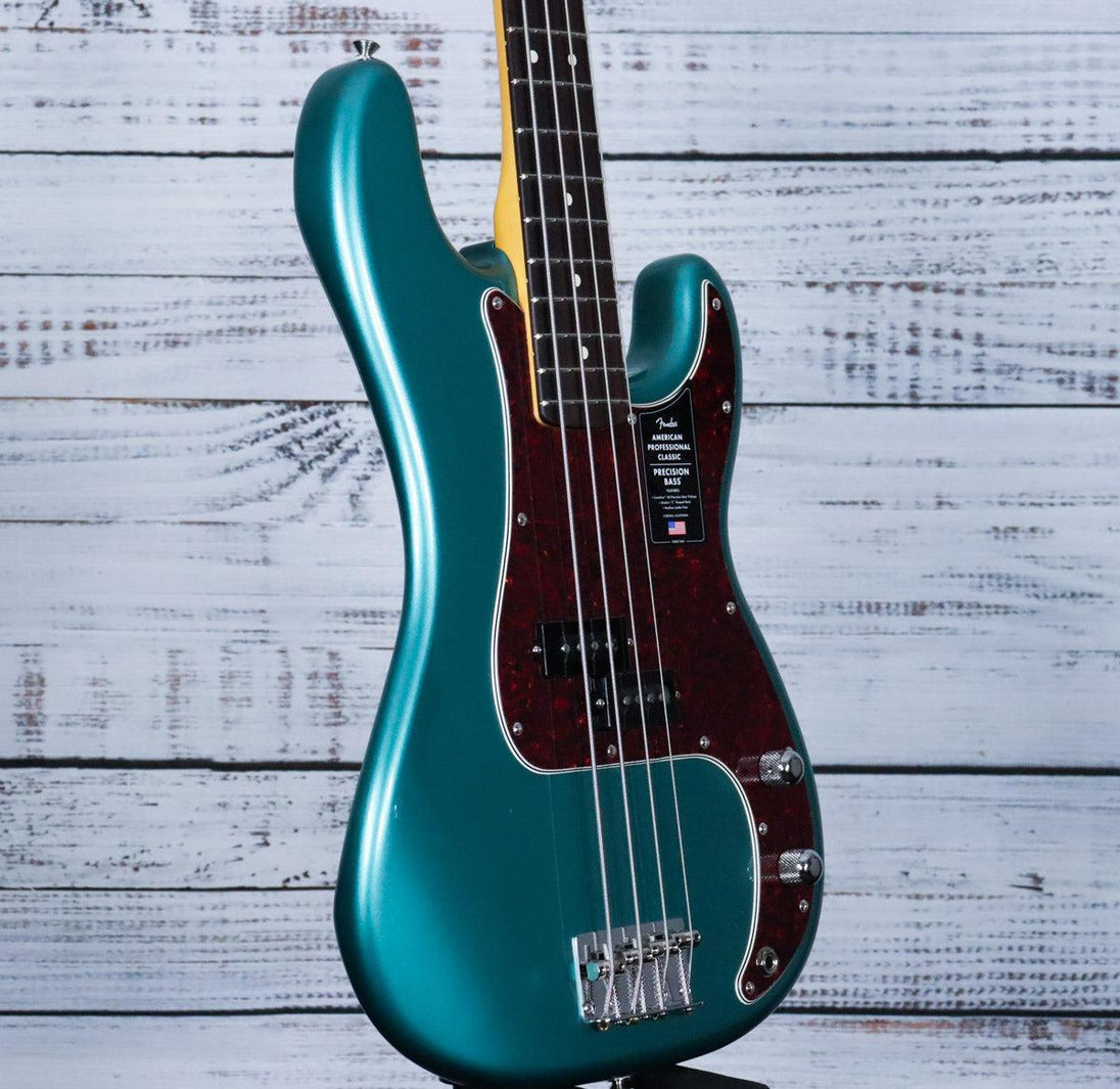 The Fender American Professional Classic Precision Bass combines timeless vintage style with modern playability. Its Coastline™ ’60 split-coil Precision Bass® pickup delivers rich, punchy tones with clear articulation. The sleek Modern “C” neck offers superior comfort for extended playing, while Fender’s iconic ‘lollipop’ tuners ensure stable, precise tuning. With custom-faded vintage finishes and professional-grade craftsmanship, this bass shines both in the studio and on stage, delivering the classic Fender soul evolved for today’s musician.