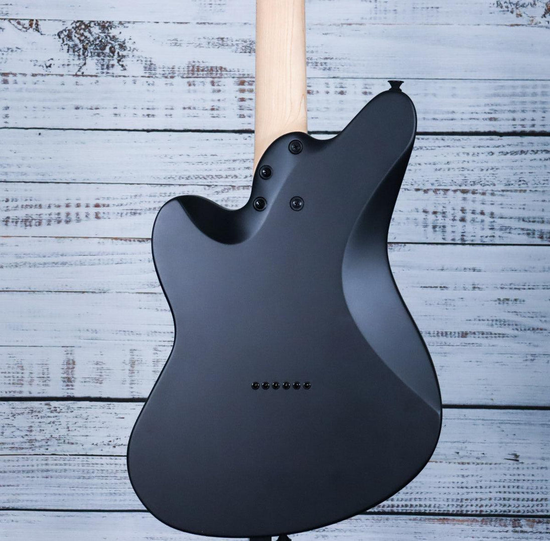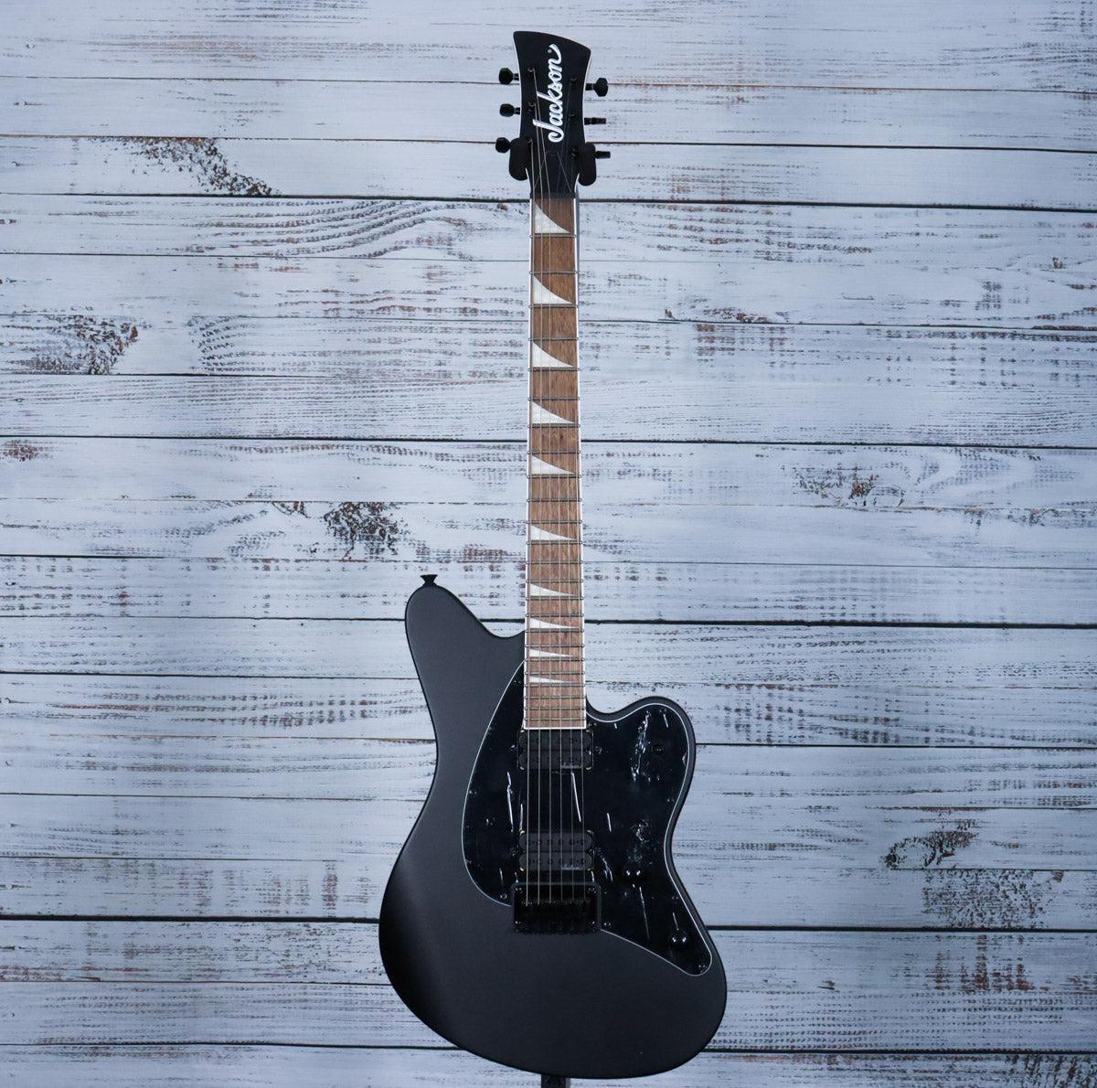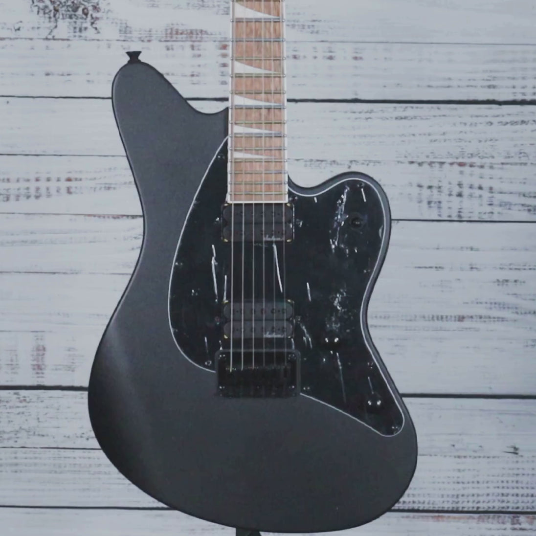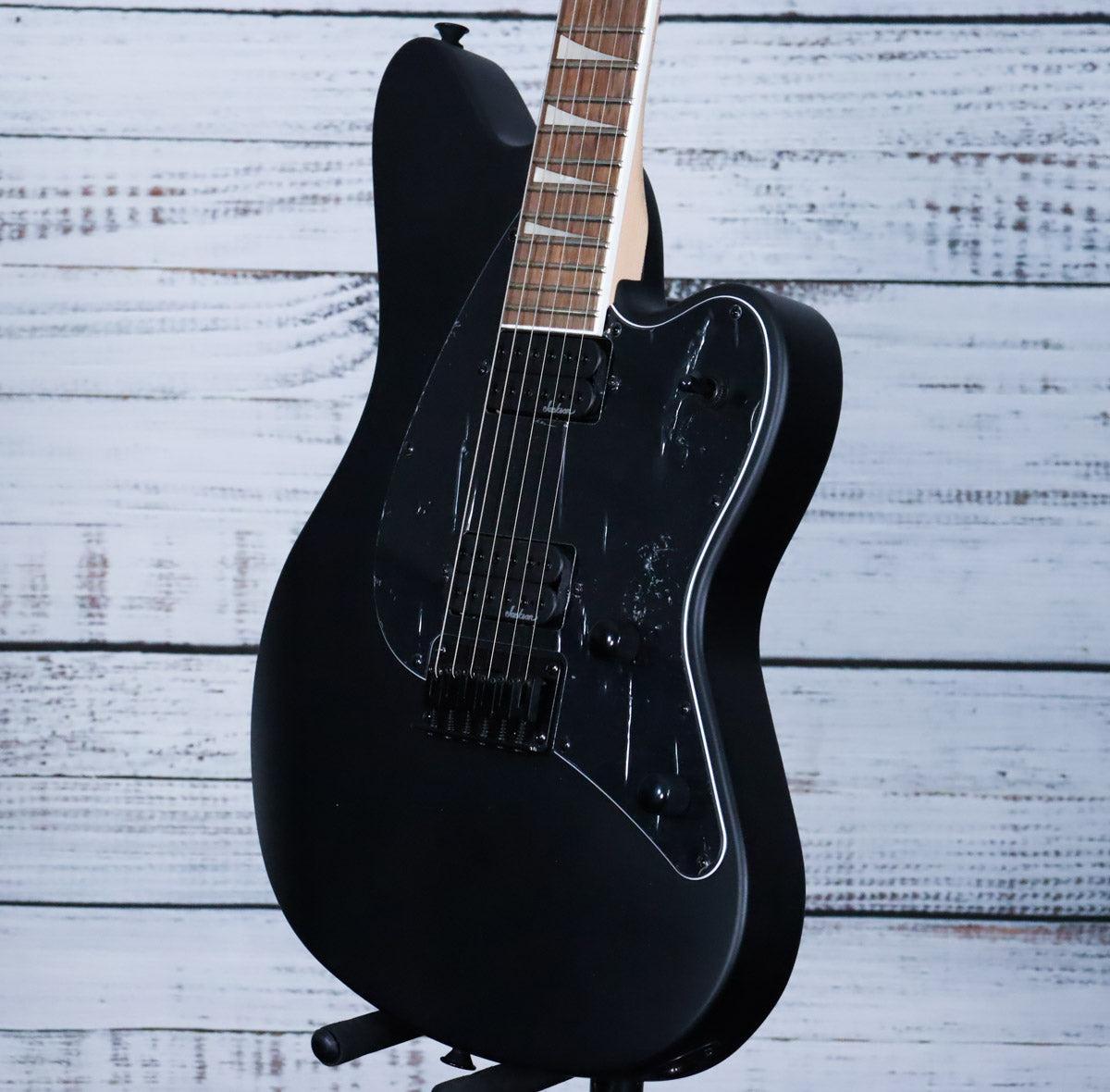 The Jackson X Series Surfcaster SC HT6 in Satin Black combines classic design with modern performance tailored for metal players. Its offset poplar body and bolt-on maple neck ensure durability and resonance, while the 12”-16” compound radius laurel fingerboard with pearloid sharkfin inlays offers smooth playability across 24 jumbo frets. High-output Jackson humbuckers deliver powerful, saturated distortion tones, perfect for aggressive styles. With streamlined controls—just one volume and one tone knob—this guitar provides straightforward, no-nonsense control, making it an ideal choice for serious musicians seeking precision and versatility.