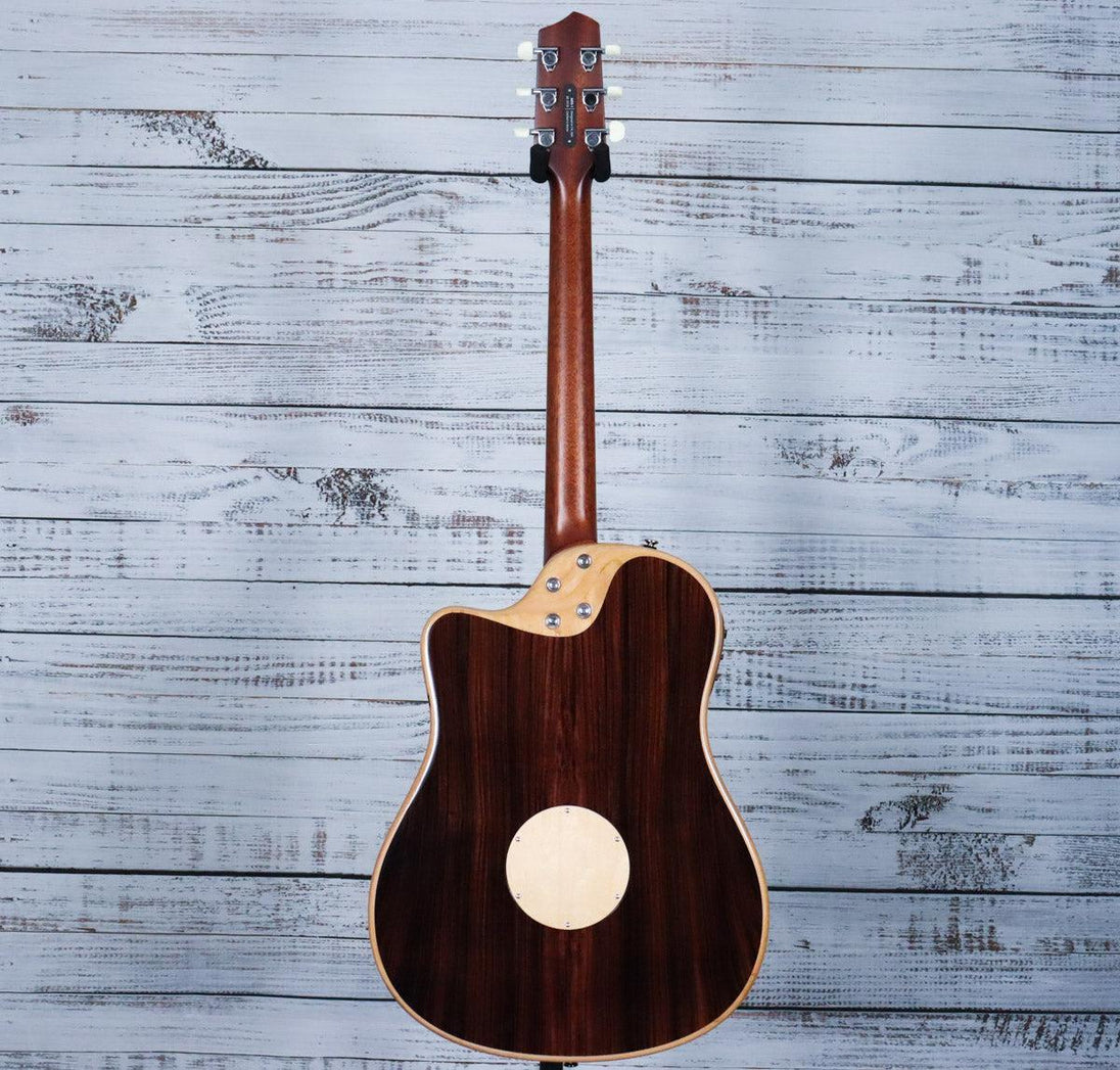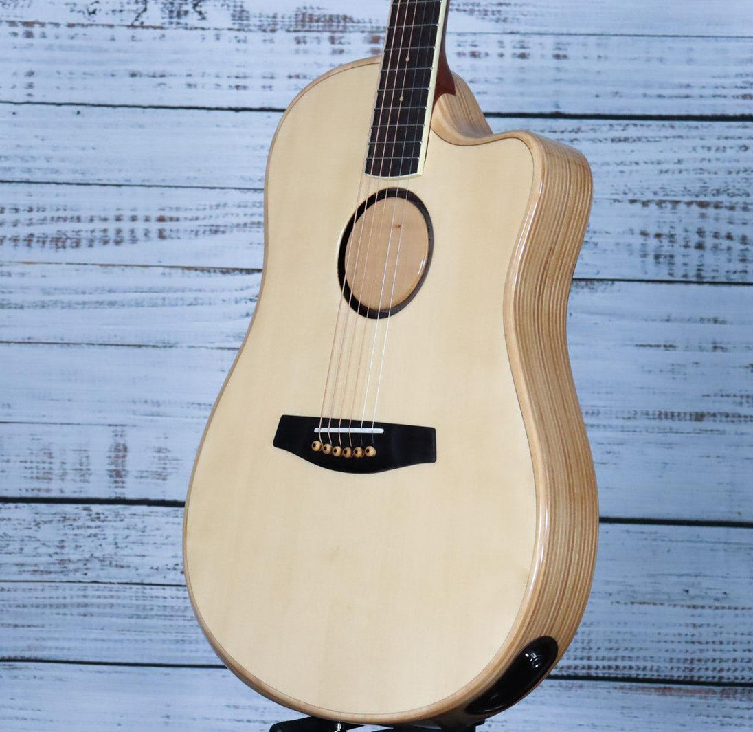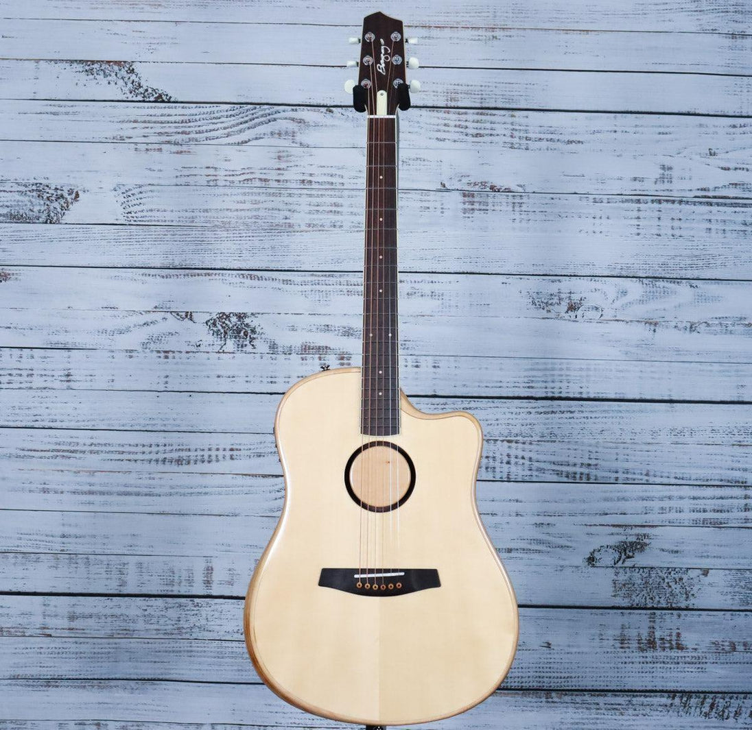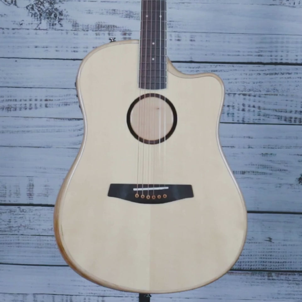 The L.R. Baggs AEG-1 Acoustic Electric Guitar features natural Engelmann spruce, combining expert craftsmanship with advanced acoustic amplification technology. Developed by master luthier Lloyd Baggs, this guitar delivers authentic, high-performance sound tailored for live settings. Its design reflects years of innovation in pickups and electronics, ensuring clear, natural tone reproduction and reliable stage presence. Ideal for professionals seeking precision and rich acoustic sound on amplified platforms.