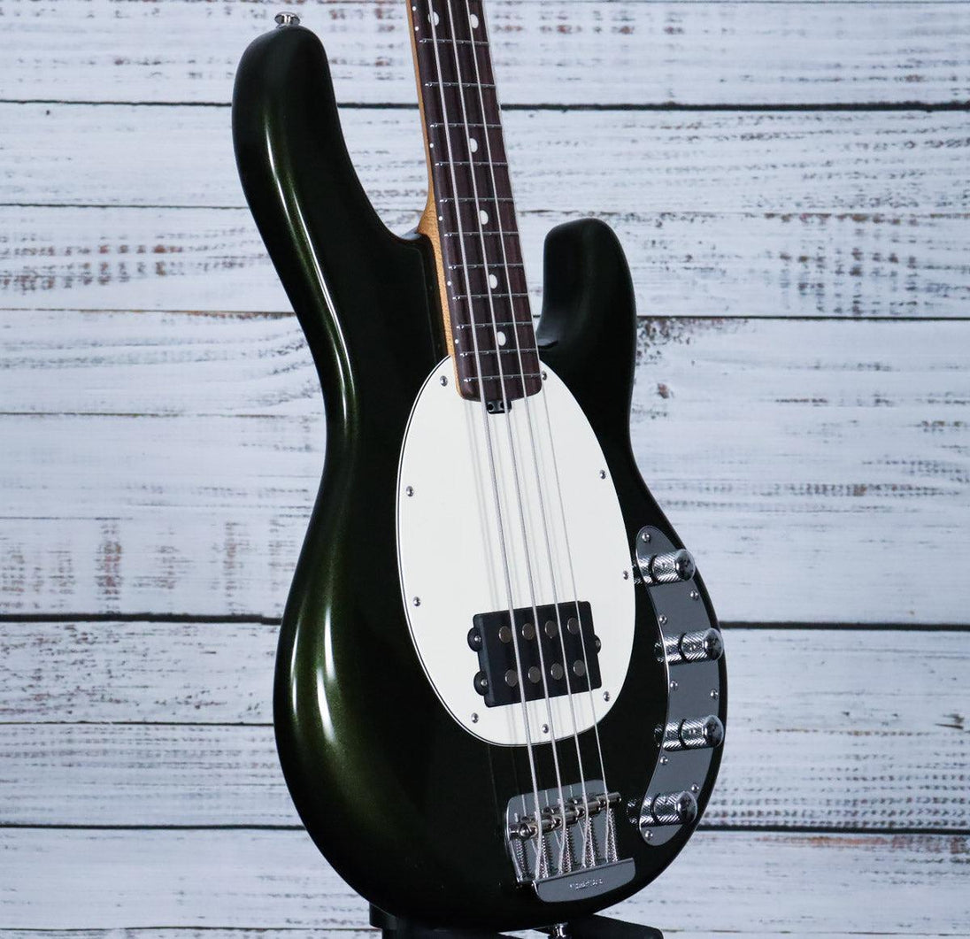The StingRay Special bass guitar has a rich history dating back to 1976. It was the first production four string bass to feature onboard active equalization, and today it's still considered one of the most iconic basses in the industry. With its solid construction, oval pickguard, 3+1 tuning key configuration, and signature Music Man humbucker, this instrument offers unmatched sound, feel, and style.