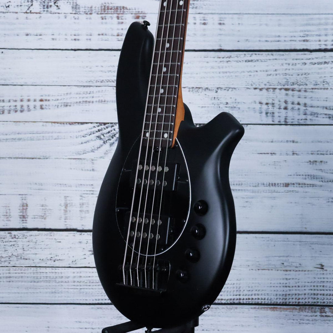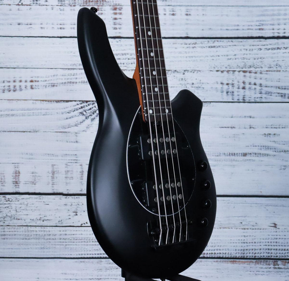 The Sterling Bongo 5-string Bass in Stealth Black combines iconic Music Man design with advanced tonal versatility. Its sleek, contoured body and deep cutaways provide smooth upper-fret access, while the HH pickup configuration, blend control, and 2-band EQ deliver powerful lows, clear highs, and precise sound shaping. Available in a striking Stealth Black with a matching headstock, this bass is built to meet the demands of professional musicians seeking both style and performance.