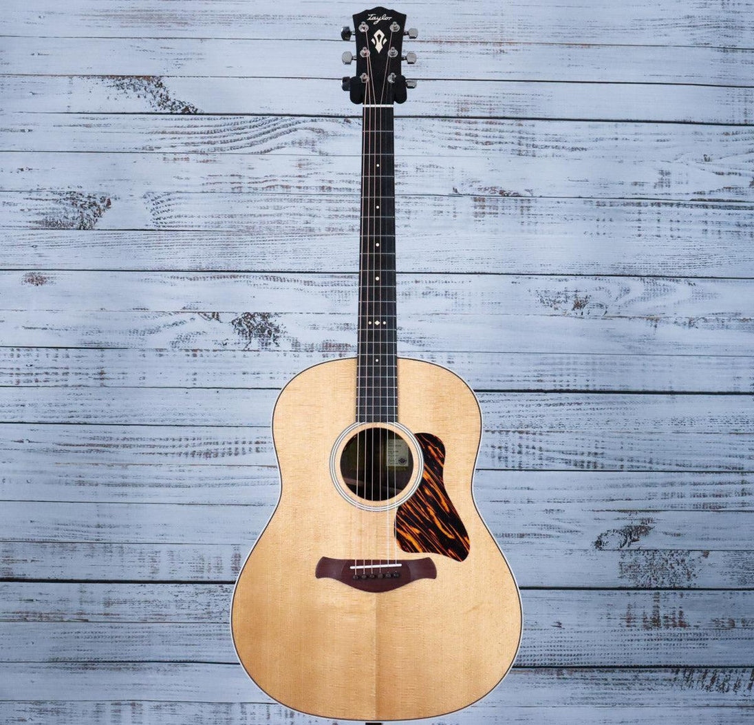 The Taylor Gold Label 717e Natural features a modified round-shoulder dreadnought body with a Grand Pacific shape, deepened by 3/8" at the sound hole for enhanced low-end power and projection. Crafted with solid Indian rosewood back and sides and a torrefied Sitka spruce top, it delivers a warm, round tone enriched by rosewood’s blooming overtones. Its fanned V-Class bracing and upgraded interior voicing provide exceptional balance and sustain, while the revolutionary neck design ensures superior playability, making it a refined choice for discerning players seeking rich, dynamic sound.