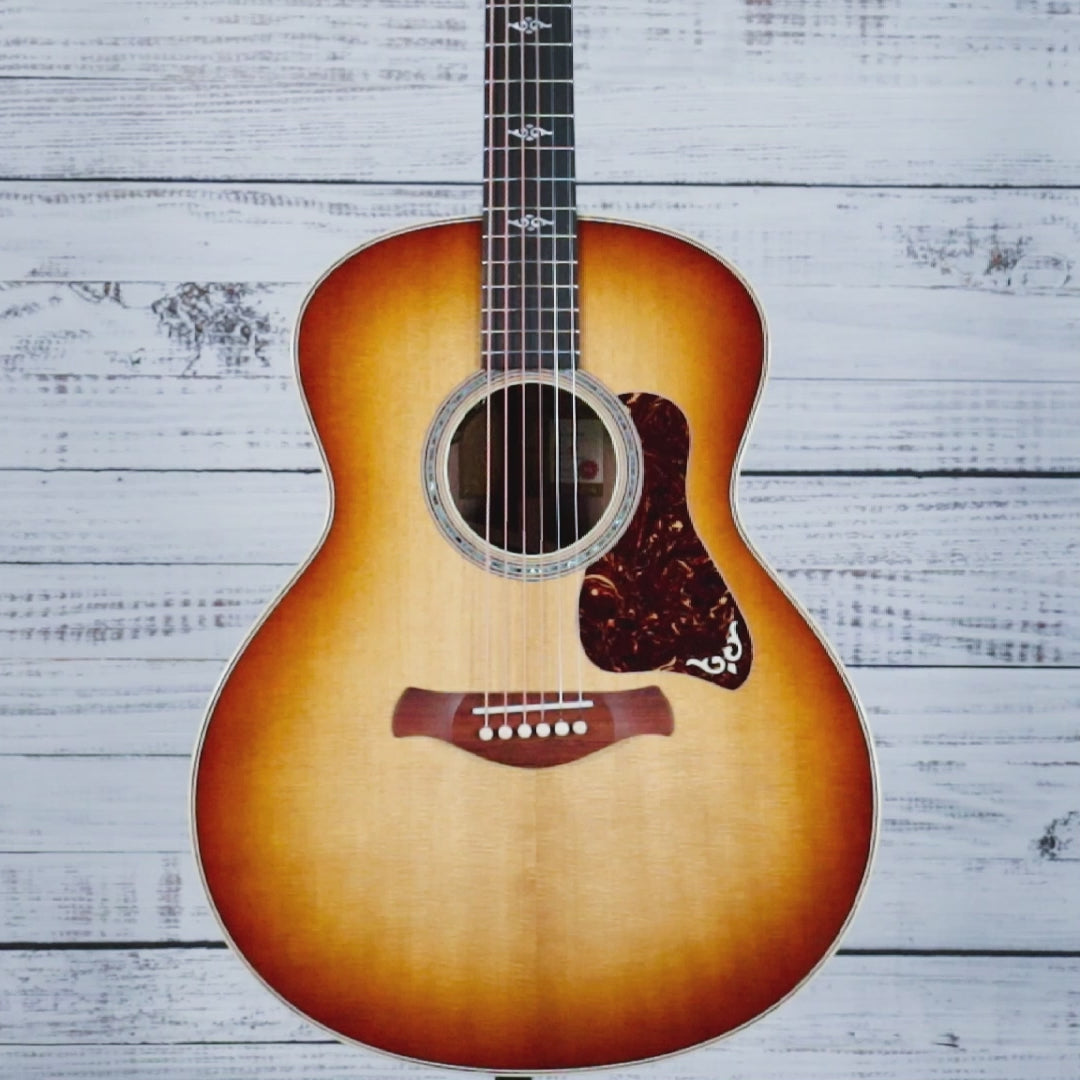 Experience unparalleled sound quality with our Taylor Gold Label 814e Sunburst. Showcasing a lustrous sunburst finish, the highest quality Honduran rosewood back and sides, and a torrefied Sitka spruce top with V-Class bracing, this guitar is truly a masterpiece. With its innovative Super Auditorium body shape and expertly crafted long-tenon neck joint, this guitar delivers unmatched warmth, power, and clarity of sound. Experience the ultimate in resonance and adjustability for professional performance with the Taylor Gold Label 814e Sunburst.