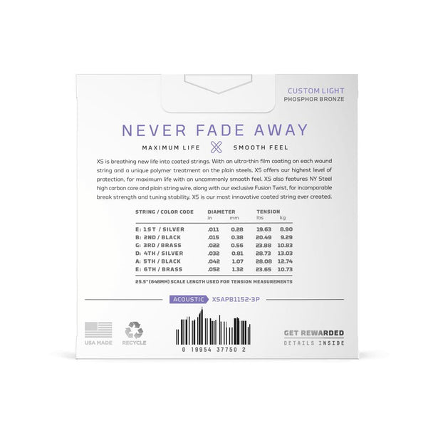 D'Addario XS Acoustic 80/20 Bronze Custom Light | 11-52 | 3pk
