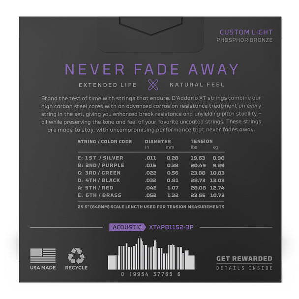 D'Addario XT Acoustic Phosphor Bronze Custom Light | 11-52 | 3pk
