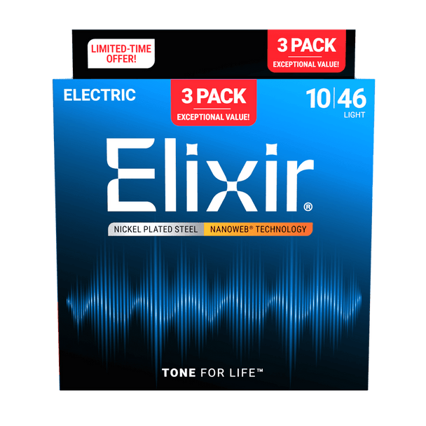 Elixir 16567 Electric Nickel Plated Steel w/ NANOWEB® Technology Light 10-46 | 3pk