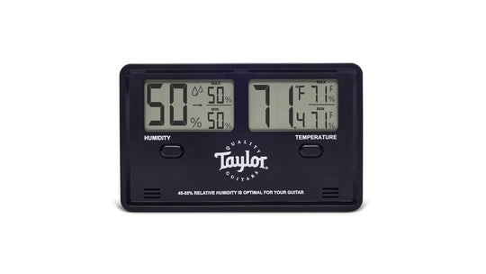 The Taylor Hygrometer is the ultimate tool for monitoring humidity and temperature to ensure optimal playing conditions for your acoustic guitar. Its memory features allow you to easily track climate information and its accuracy of 5%...Regular price $ 24.99Regular price $ 24.99 -