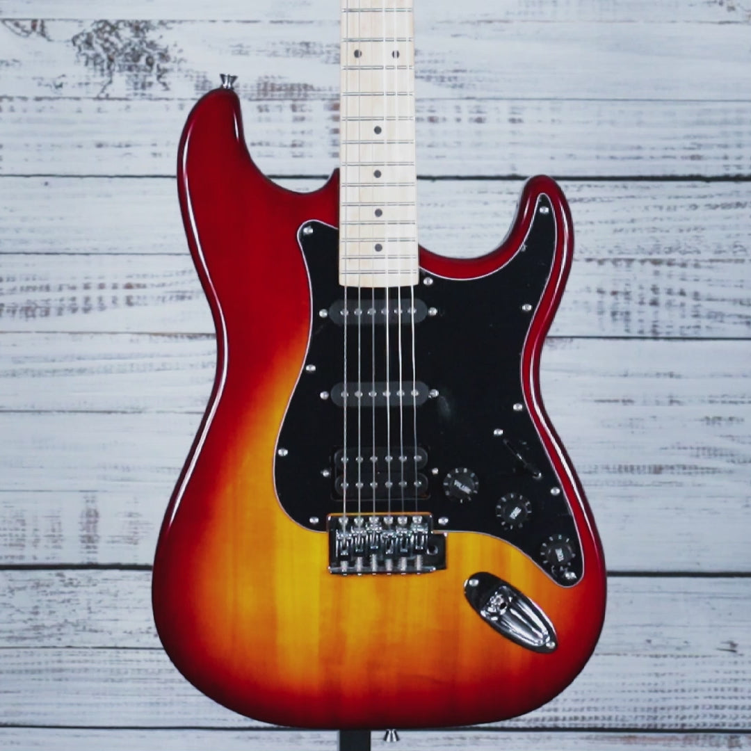 The Amati H-Series Electric Guitar in Classic Cherry Sunburst offers a refined blend of vintage aesthetics and modern playability. Crafted with precision, its solid body delivers rich, resonant tones ideal for a wide range of genres. The classic cherry sunburst finish highlights the guitar’s elegant contours, while high-quality hardware ensures reliable performance.