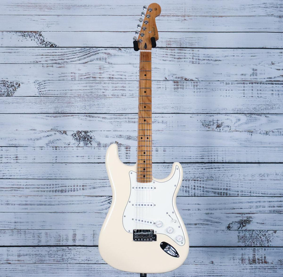 The Fender Limited Edition Player II Stratocaster in Olympic White combines classic Stratocaster design with modern enhancements for exceptional playability. Featuring a comfortable C-shaped neck and versatile Player Series pickups, it delivers a dynamic range of tones suitable for a variety of styles. The sleek Olympic White finish adds timeless elegance, while reliable hardware ensures tuning stability and durability on stage. Crafted for guitarists seeking professional quality and vintage-inspired aesthetics in one instrument.