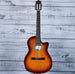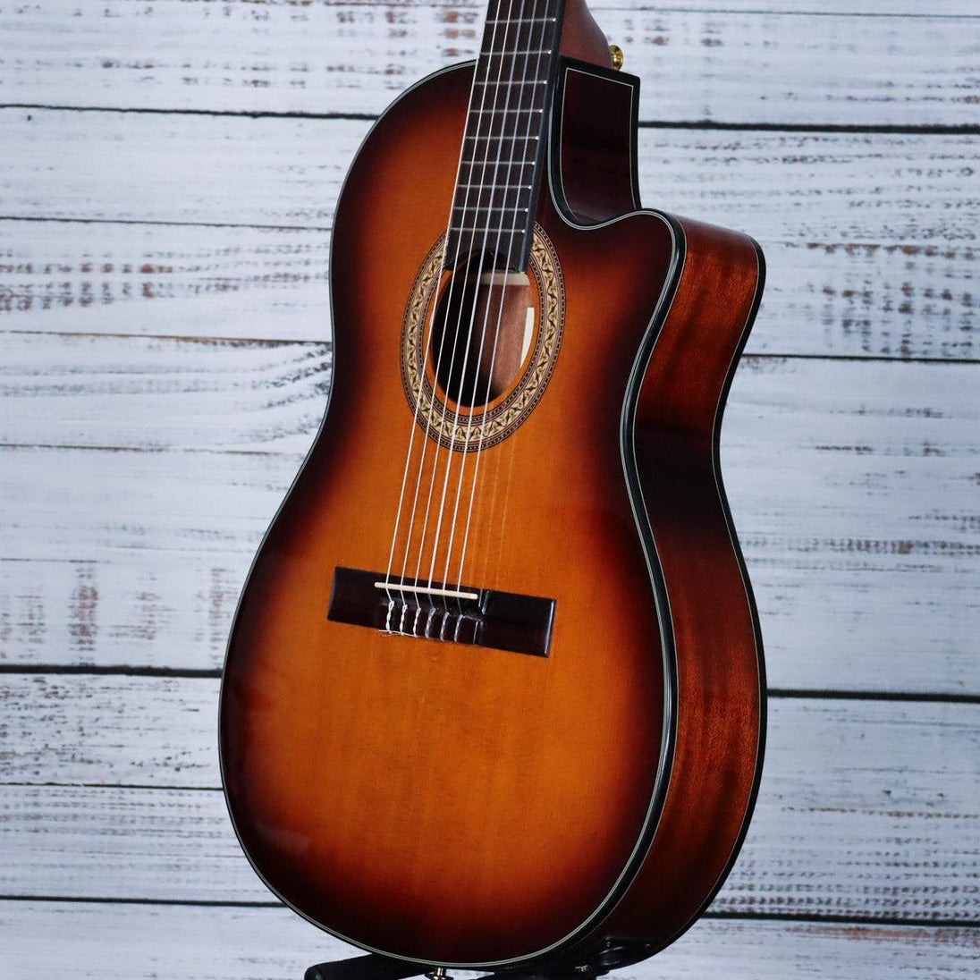The Ibanez GA35TCE brings classical elegance to a modern, player-friendly design. This cutaway thinline acoustic-electric features a slim body that's comfortable for all skill levels, paired with a standard-scale rosewood fingerboard and satin-finished neck for smooth playability. The classical-style headstock ensures reliable tuning stability, while the built-in AEQ-210 pickup system lets you amplify your sound with confidence. Whether you're composing new material or performing live, this sunburst beauty delivers the warmth and resonance of traditional nylon-string acoustics in a more accessible package.