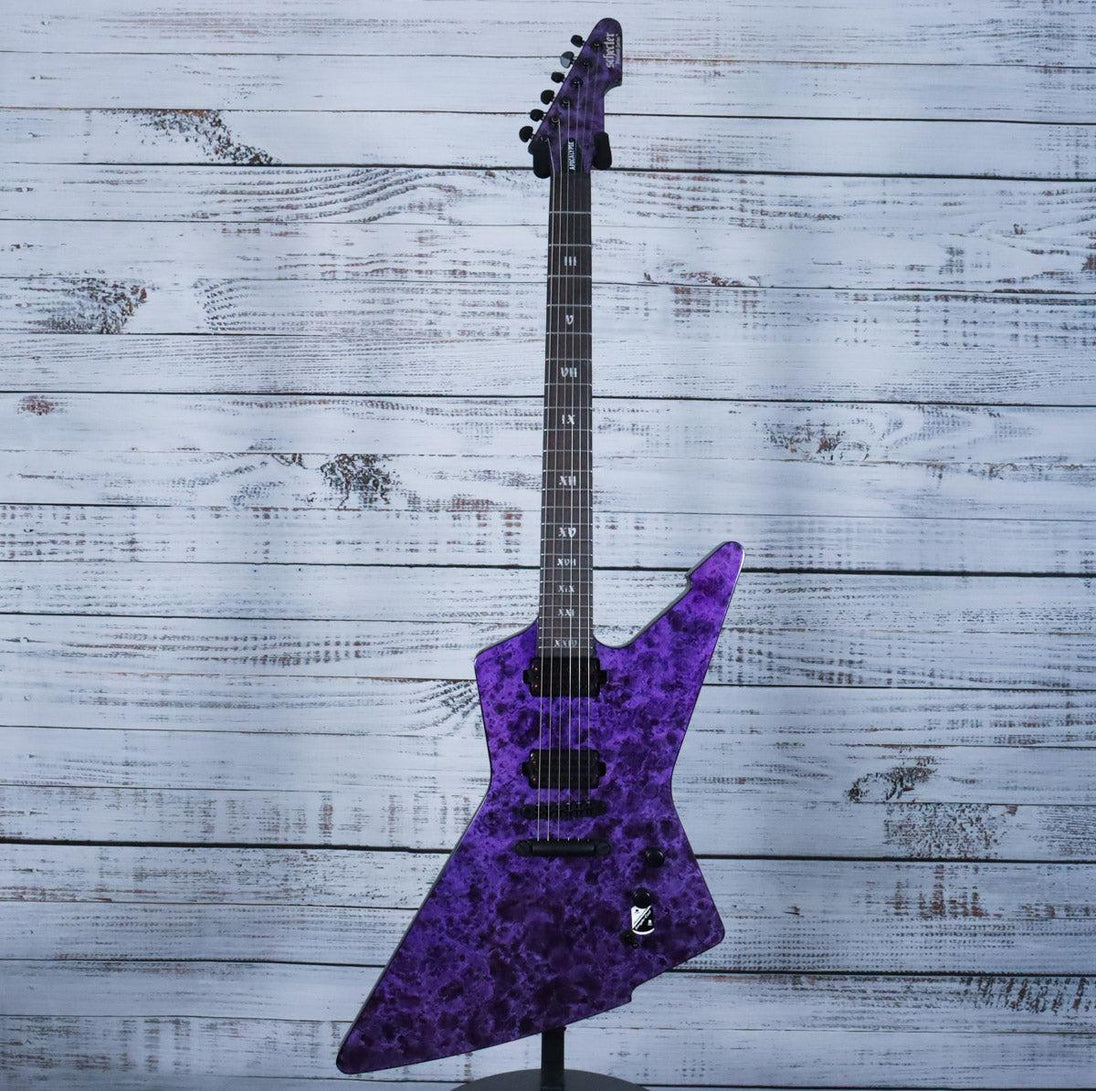 The Schecter Apocalypse Series E-1 | Purple Reign is built for metal players who demand power and precision. Equipped with Apocalypse-VI passive pickups, it delivers intense punch and versatile tonal options. Its lightweight swamp ash body, Thin-C neck profile, and extra-jumbo stainless-steel frets offer exceptional comfort and smooth playability, perfect for aggressive riffs and fast solos. This guitar combines fierce sound and ergonomic design to elevate your performance to the next level.