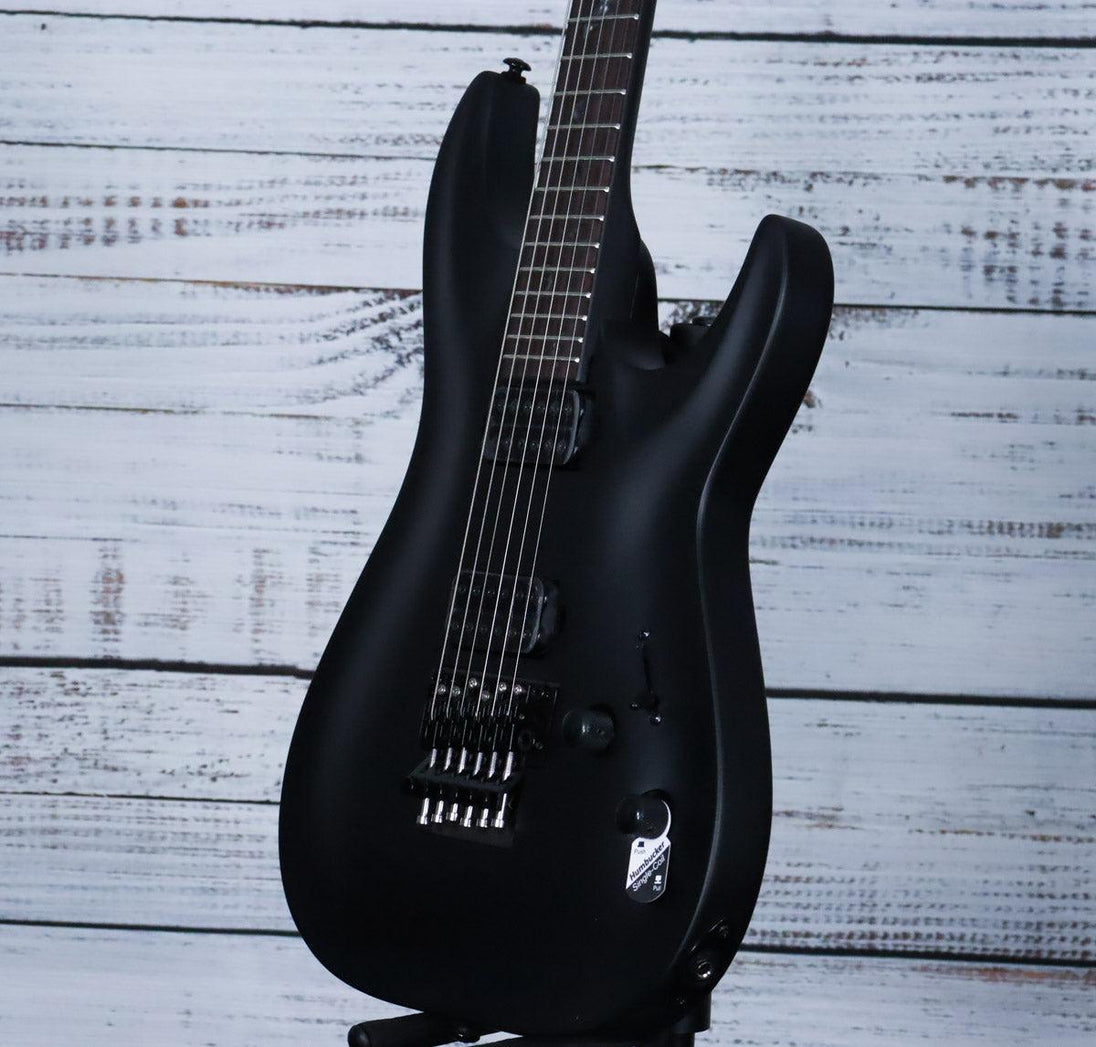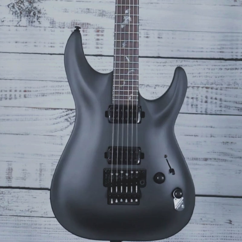 The Schecter Damien-6 FR in Satin Black features striking "bat" inlays that give it a distinctive edge visually. Its satin black finish enhances the guitar’s bold, sinister style, making it perfect for players seeking a powerful presence on stage. Designed to deliver dynamic tones and solid performance, this guitar is ready to help you shock and rock every gig.