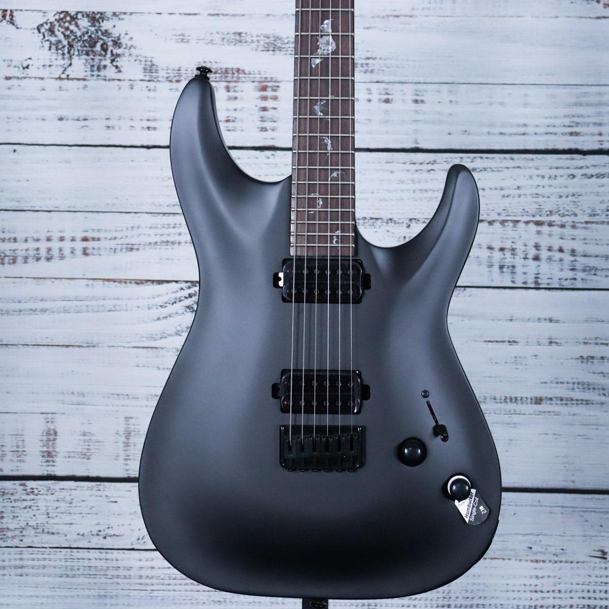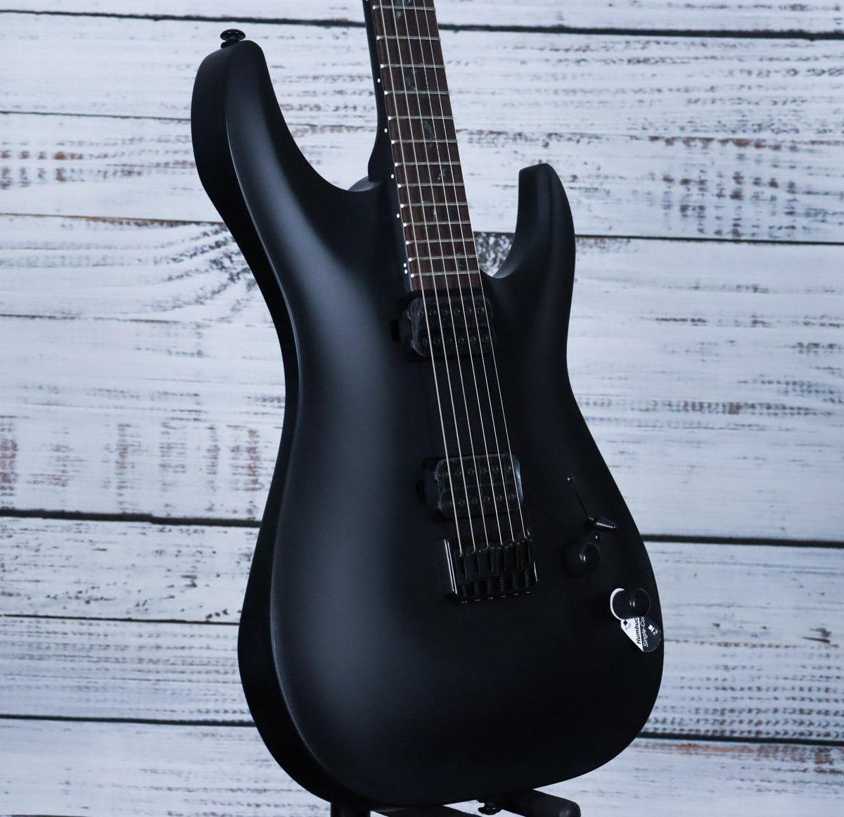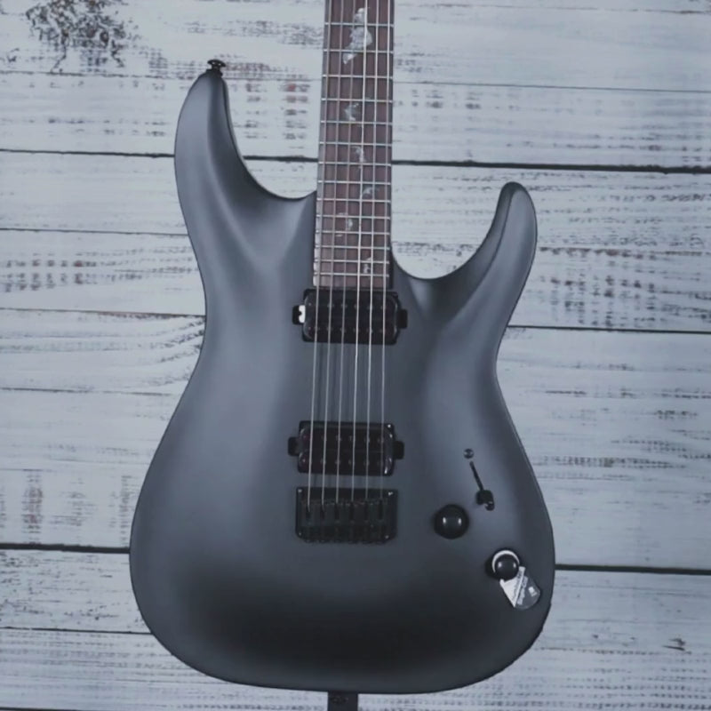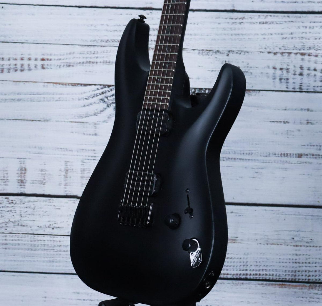 The Schecter Damien-6 in Satin Black features striking "bat" inlays that give it a distinctive edge visually. Its satin black finish enhances the guitar’s bold, sinister style, making it perfect for players seeking a powerful presence on stage. Designed to deliver dynamic tones and solid performance, this guitar is ready to help you shock and rock every gig.