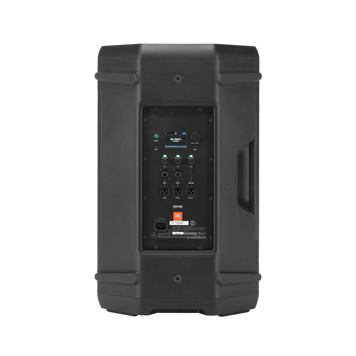 The JBL PRX912 is a powerful loudspeaker in the PRX900 Series of powered loudspeakers and subwoofers, designed to offer top-tier portable PA performance. It benefits from an advanced acoustic design, comprehensive DSP, exceptional output capacity, and smartphone control through the JBL Pro Connect App. The PRX900 Series is an apt solution for DJs, bands, music venues, rental houses, corporate A/V providers or any user requiring a professional system that delivers loud, clear sound in virtually any setup. This two-way 12-inch loudspeaker is built using JBL's advanced acoustic technologies. A new-gen driver system with an ultra-efficient Class D amp ensures crisp audio at maximum volume with extended low-frequency range and improved dispersion. PRX912's DSP package, accessible via an onboard color LCD or the JBL Pro Connect App, offers 12-band parametric EQ for system tuning, dbx DriveRack tech with Automatic Feedback Suppression, and speaker delay settings and presets.