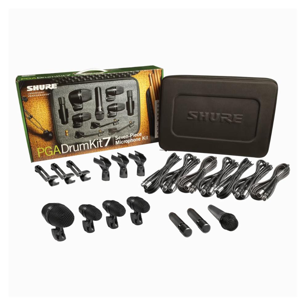 The PGADRUMKIT7 includes a complete microphone package for reinforcing kick drums, snare drums, rack toms, floor toms, congas and cymbals for performance and recording.