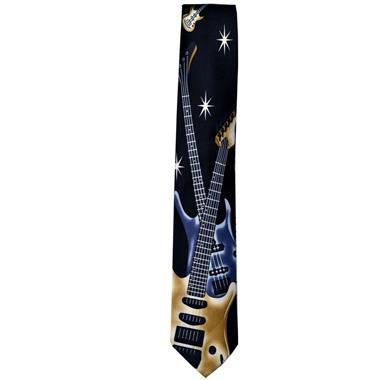 Stand out as a guitar enthusiast with this blue and gold guitar design tie. Crafted with precision at 56 inches, this tie is perfect for any occasion. Showcase your love for music and elevate your style with this unique accessory.