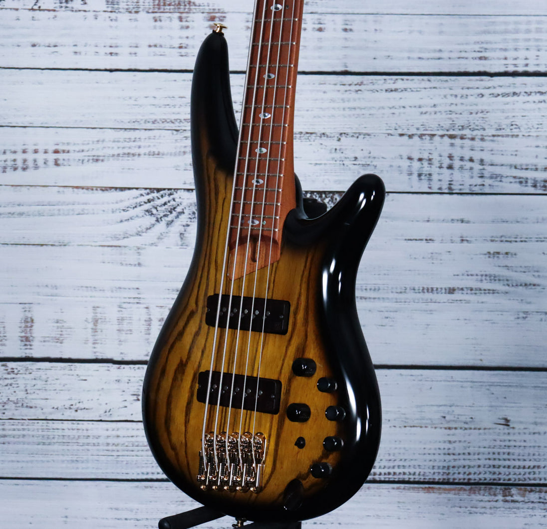 The Ibanez SR4505 Prestige 5-string Bass in Desert Sunset Burst epitomizes precision, performance, and playability. Crafted with a blend of advanced manufacturing and traditional Japanese techniques, this instrument reflects insights from global musicians. Its meticulous design and construction deliver exceptional tonal clarity and effortless playability, ideal for professionals seeking a versatile and reliable bass with refined craftsmanship and innovative features.