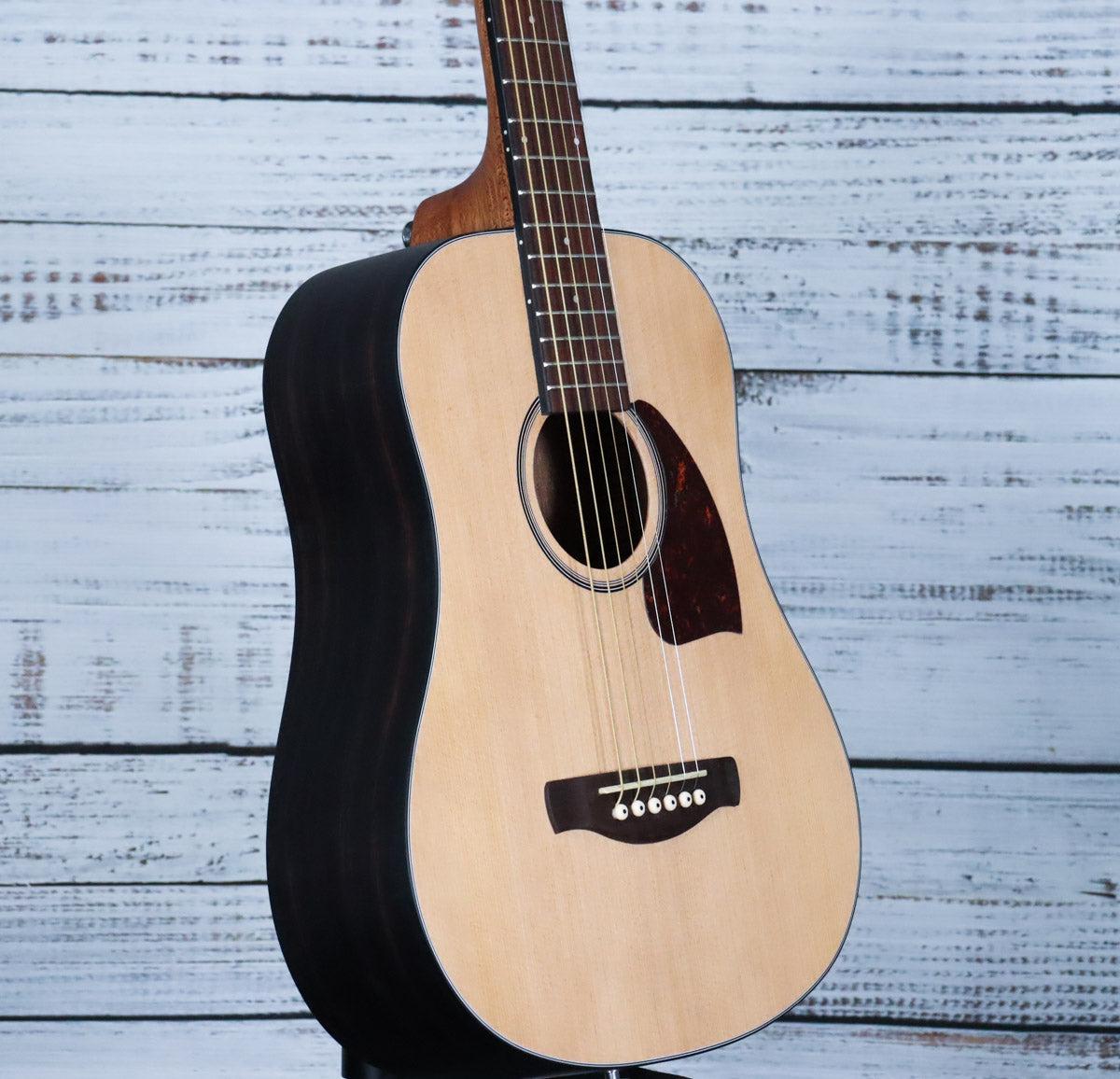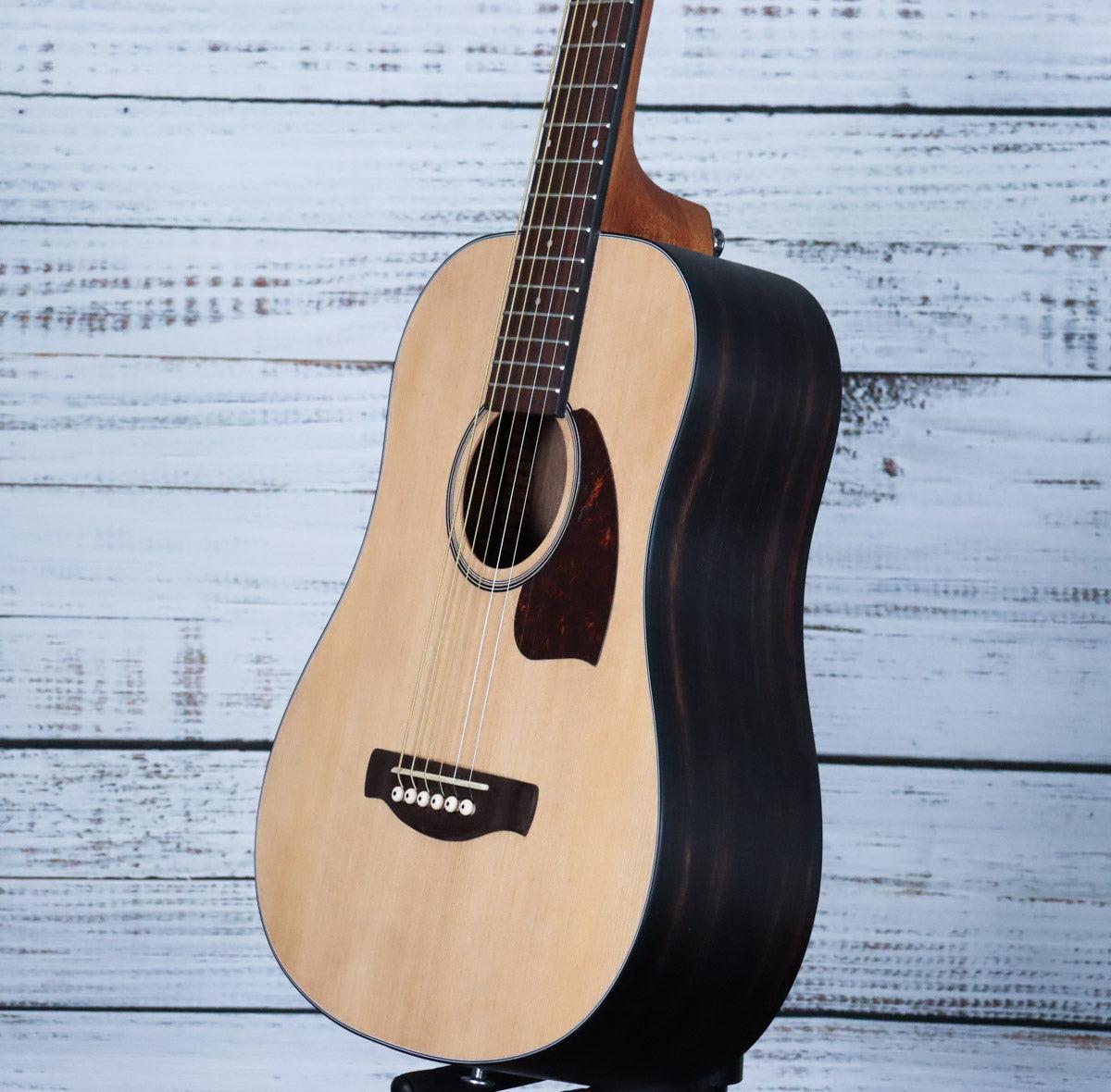 Meet the Ibanez PF2BE 3/4-Scale Acoustic Guitar - a perfect mix of comfort, portability, and sound quality. With a spruce top and black ebony back and sides, this mini-dreadnought offers great projection in a compact size. Its meranti neck minimizes fatigue, ideal for students and traveling musicians. Featuring Ibanez Advantage bridge pins and an open pore finish, this guitar is a reliable travel-friendly choice. Discover the Ibanez PF2BE for unmatched sound on the go.