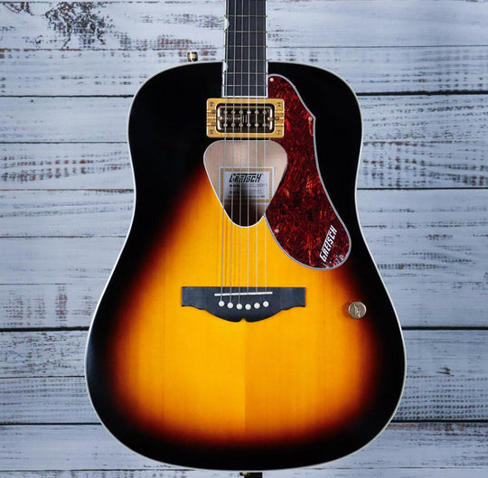 The G5022CE Rancher Jumbo Cutaway represents Gretsch's triumphant revival of an iconic 1950s design. This flagship model combines the signature triangular sound hole and elegant pickguard that defined the original with contemporary craftsmanship. As the largest...Regular price $ 599.99Regular price $ 599.99 -