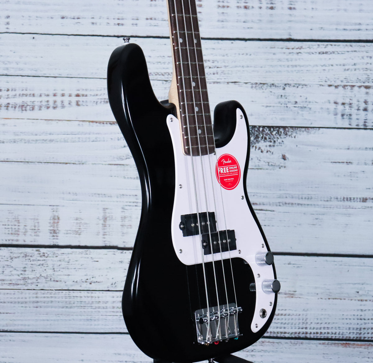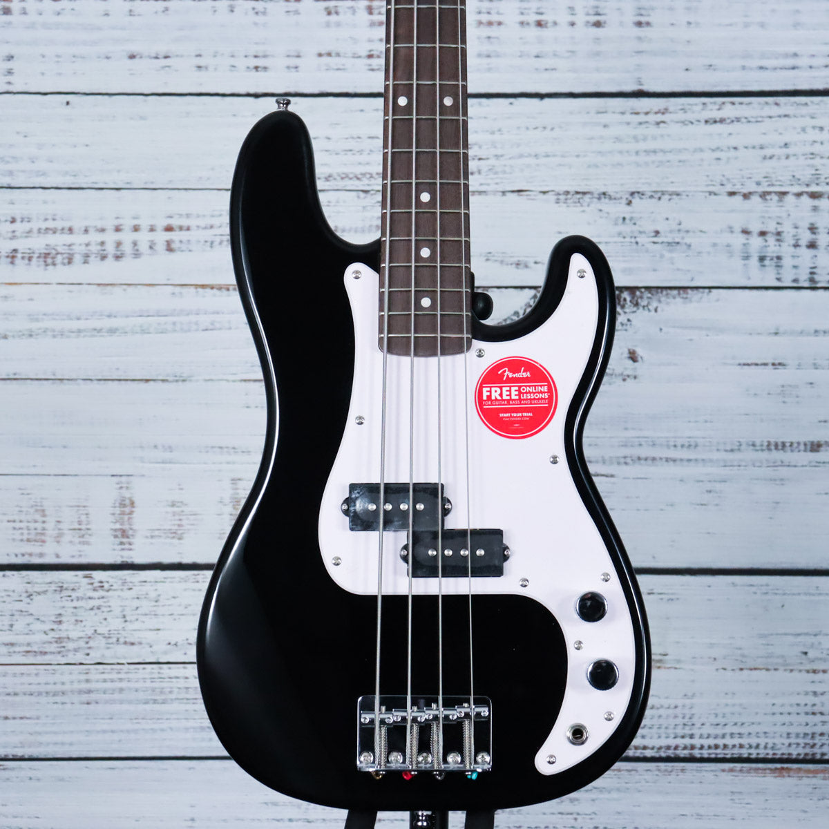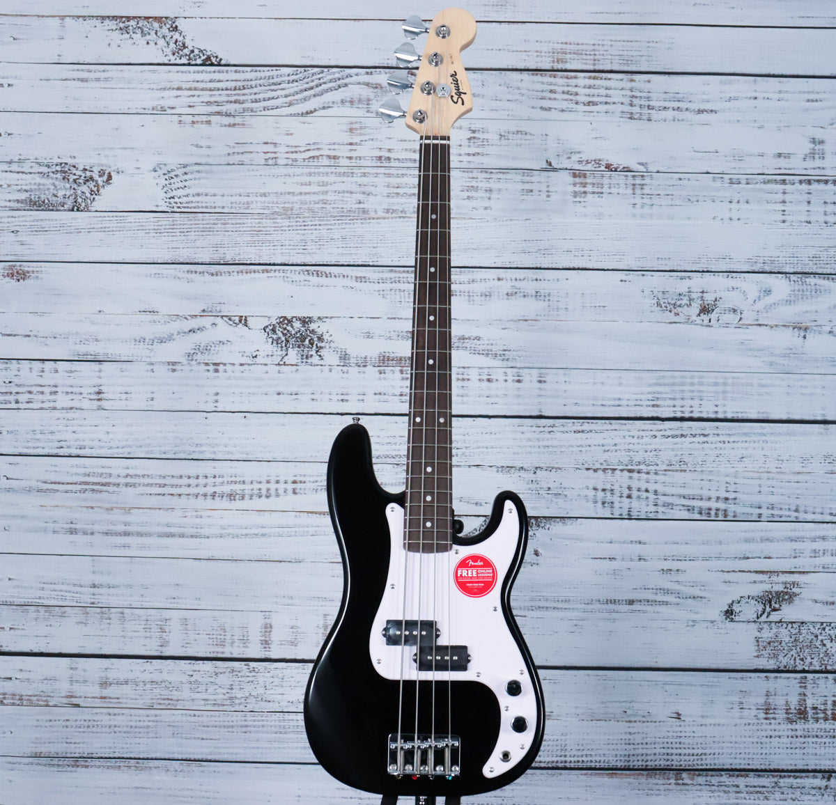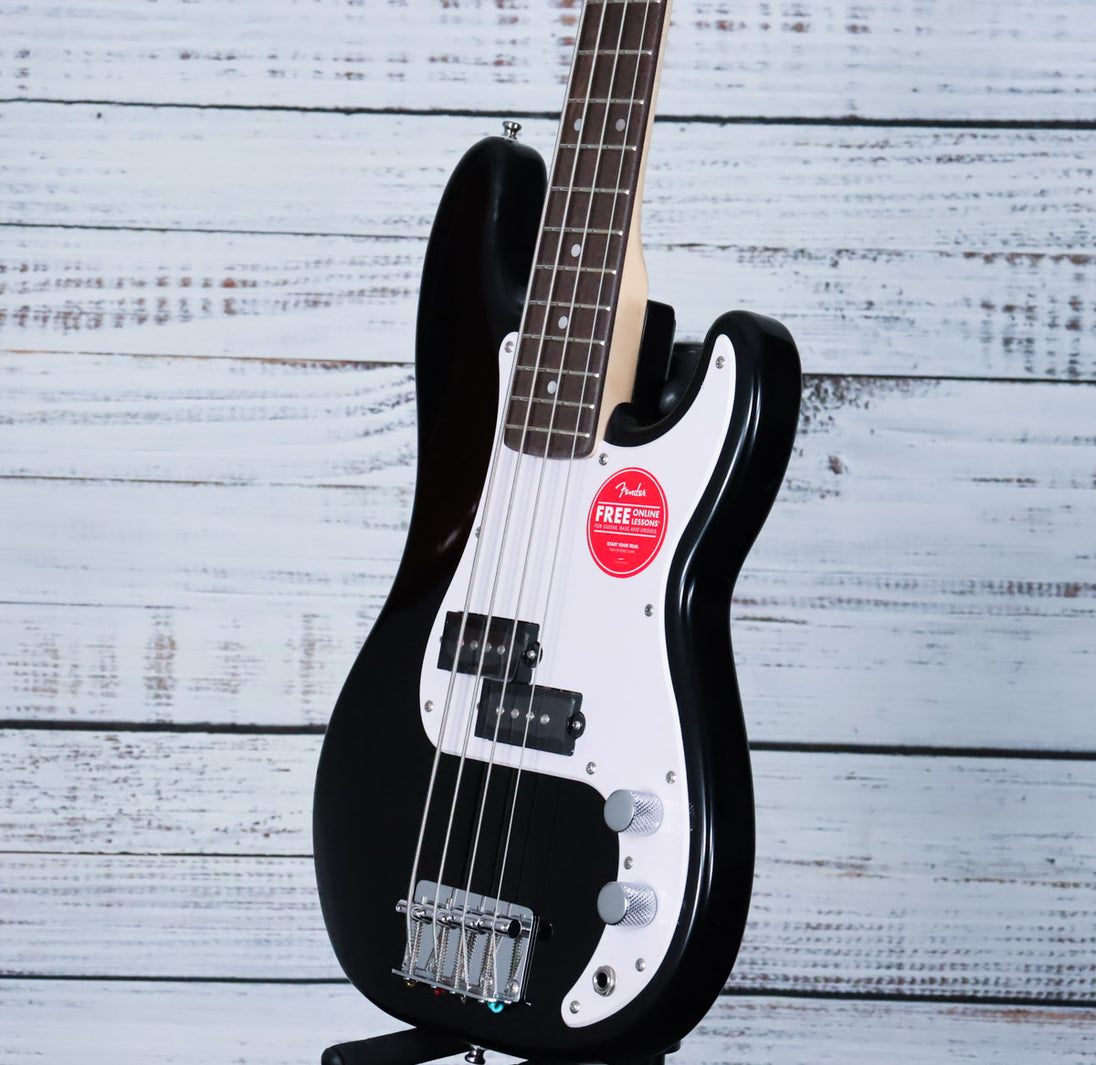 The Squier Mini Precision Bass® is the perfect companion for players seeking a reduced-size instrument with classic styling and familiar Fender® tone. Highlights include a thin and lightweight body, a short-scale neck with an easy-to-play “C”-shaped profile, a Squier split single-coil pickup with volume and tone controls for sonic variety, and a hardtail bridge for solid tuning stability.