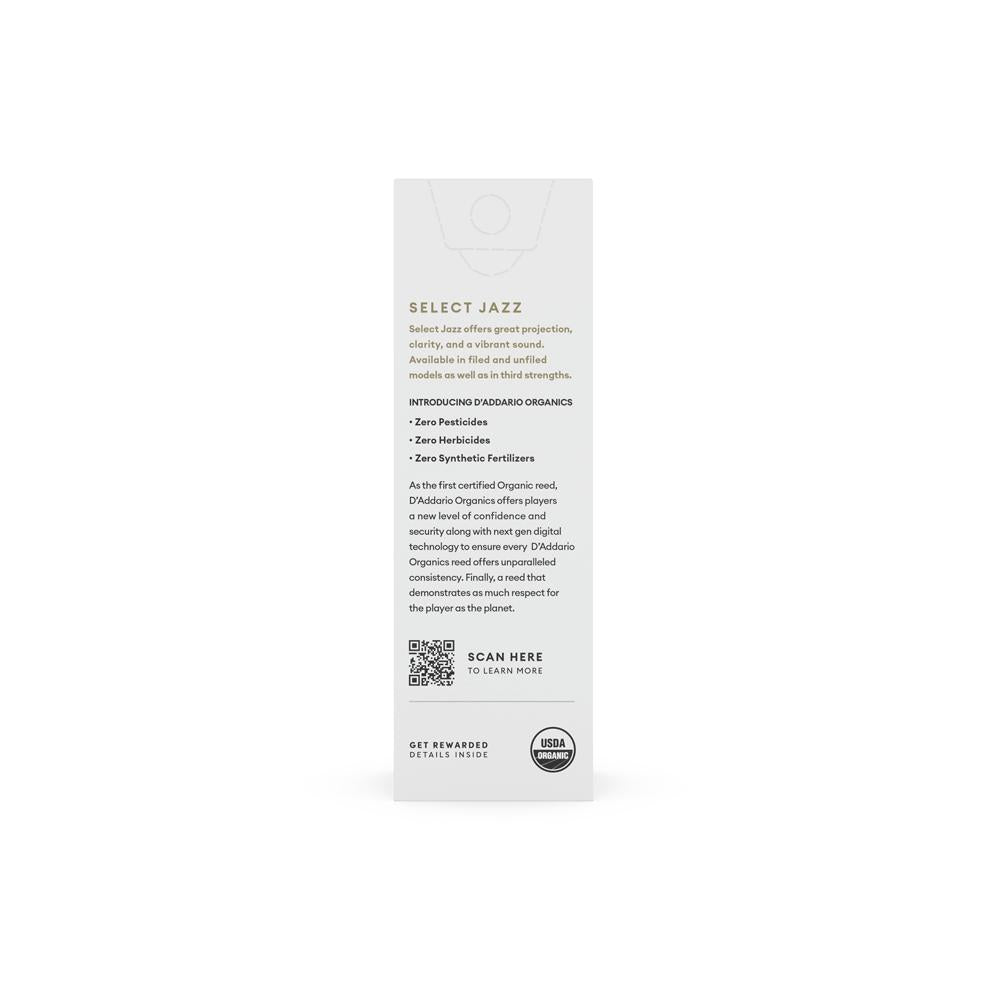 D'Addario Organic Select Jazz Filed Tenor Sax 3S reeds deliver exceptional projection, clarity, and a vibrant tone tailored for professional tenor saxophonists. Offered in both filed and unfiled versions and sold in third strengths, these reeds ensure precise mouthpiece pairing for optimal performance. Each reed is individually sealed in a recyclable paper holder and flow wrap, preserving freshness and quality. Ideal for players seeking consistent, dynamic sound with eco-conscious packaging.