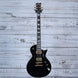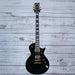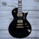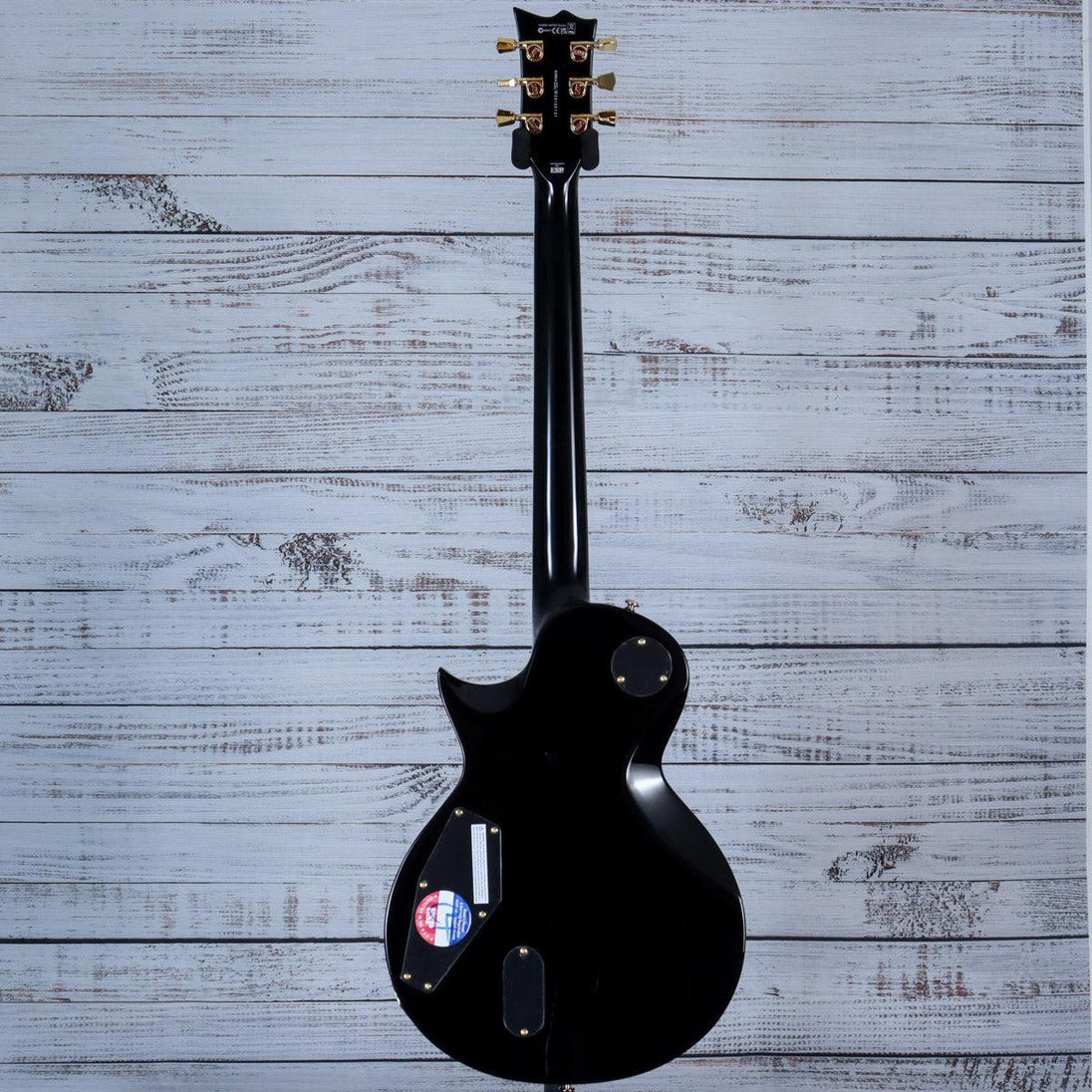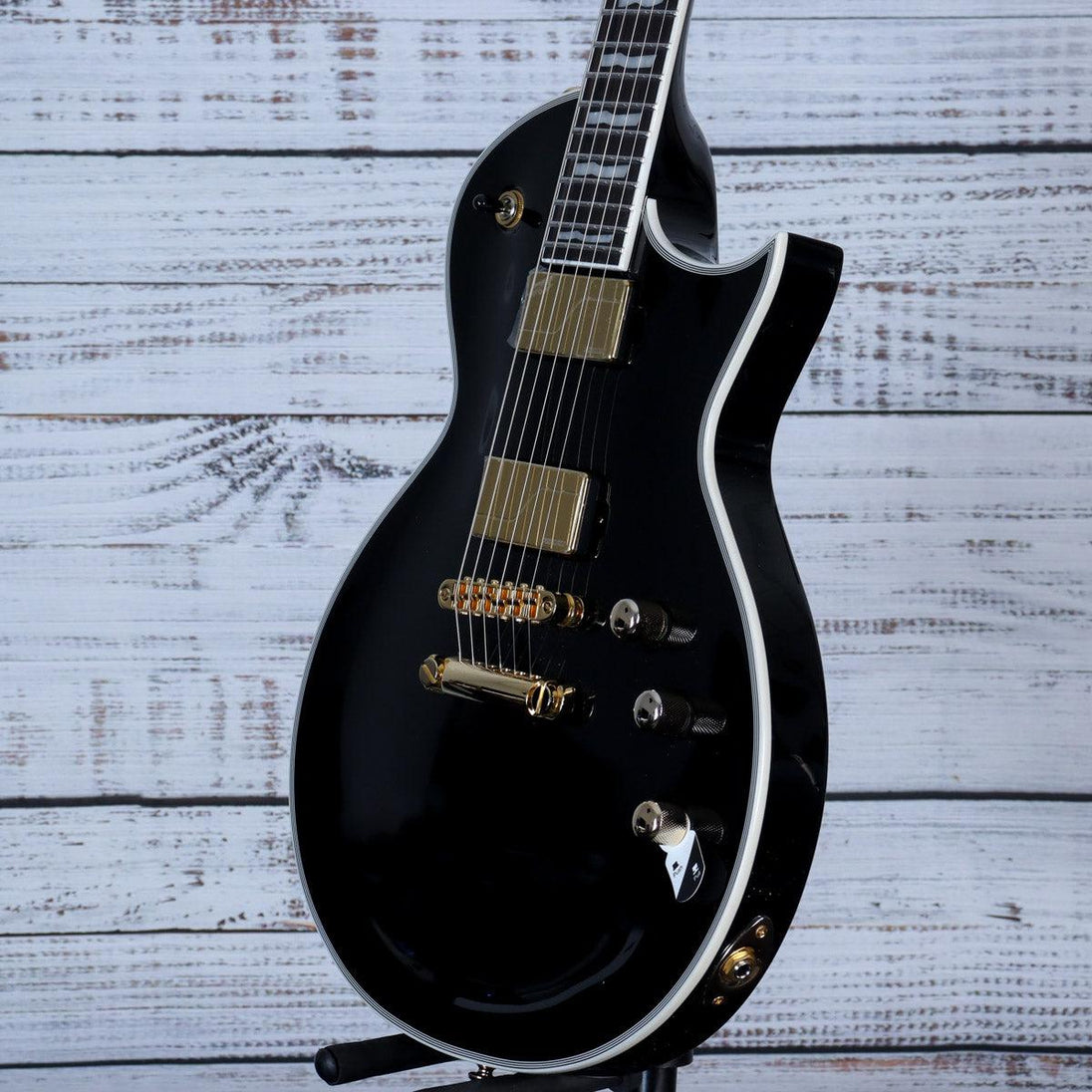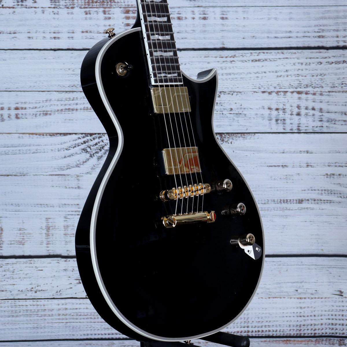 The updated EC-1000 electric guitar is a masterful example of high-performance instruments in the modern age. It features classic black gloss finish with gold hardware and elegant details such as multi-ply body and headstock binding. Drawing from traditional single-cut design, this guitar boasts set-thru construction at 24.75” scale, a mahogany body, and a three-piece fully-bound mahogany neck. But, it also incorporates modern amenities for contemporary music performance, including a TonePros locking TOM bridge and tailpiece, LTD locking tuners, a Macassar ebony fingerboard with ESP flag inlays, and 24 extra-jumbo stainless steel frets. This exceptional guitar comes equipped with Fishman Fluence Modern Humbucker active pickups, featuring push-pull control to select voicings and gold covers to match its stunning appearance. Each pickup offers two voices. The ceramic bridge pickup's Voice 1 offers the ultimate high-output ceramic humbucker tone - crisp, searing and tight. Voice 2 offers exceptional dynamics and response, producing a modern passive attack and rich organic distortion. The Fishman alnico neck pickup's Voice 1 imparts a high-output, active tone for a full, round sound with enhanced articulation and dynamics. Enjoy the precise, clean, and fluid humbucker tone of Voice 2 for your neck pickup needs.
