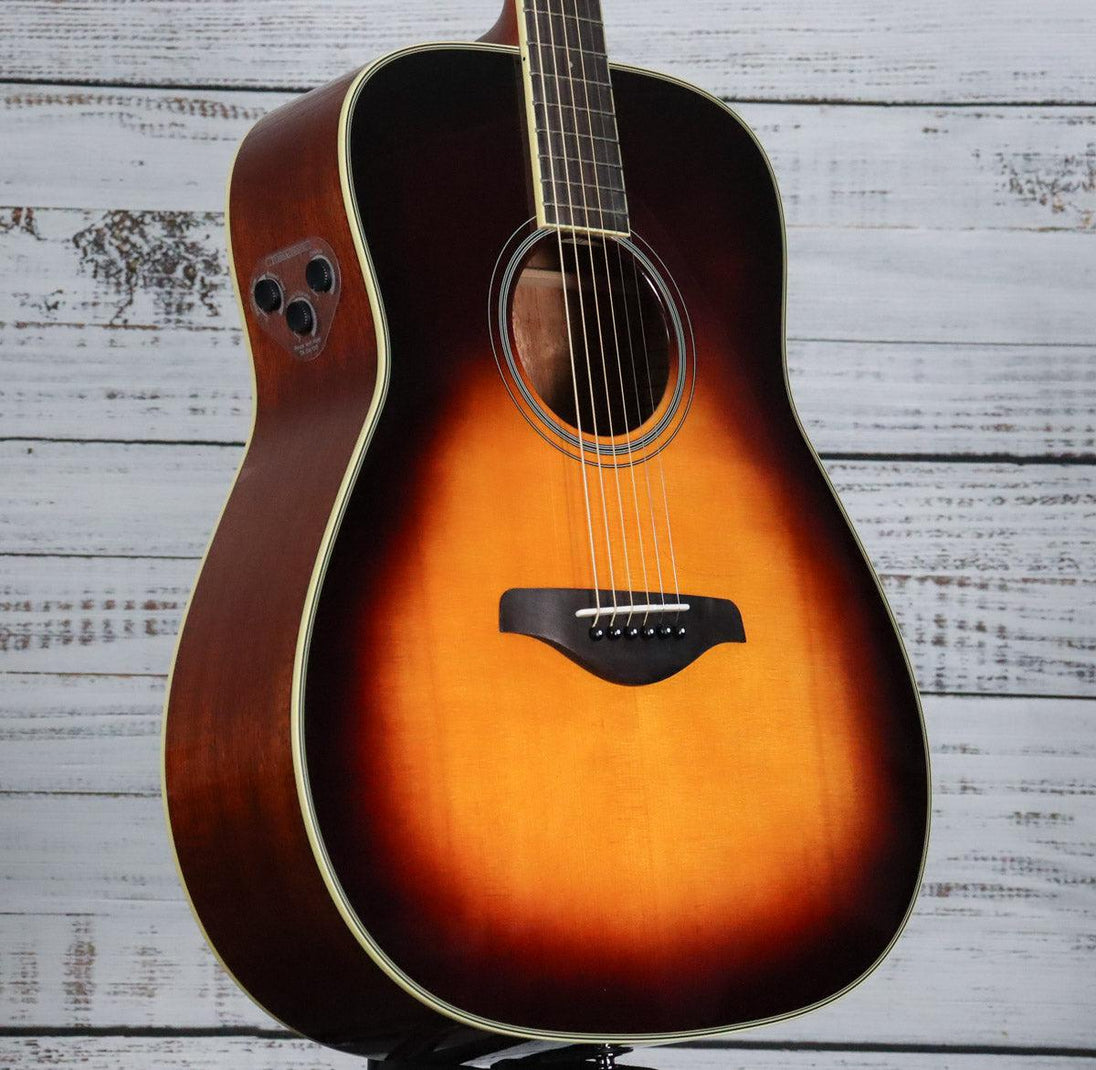 Yamaha FG-TA TransAcoustic guitars transport you to new creative spaces with immersive reverb and lush chorus effects without needing an amp or other external gear. For the singer/songwriter in you, the FG-TA features a combination of solid spruce top, mahogany back and sides and scalloped bracing to create warmth, resonance and a bold sound.