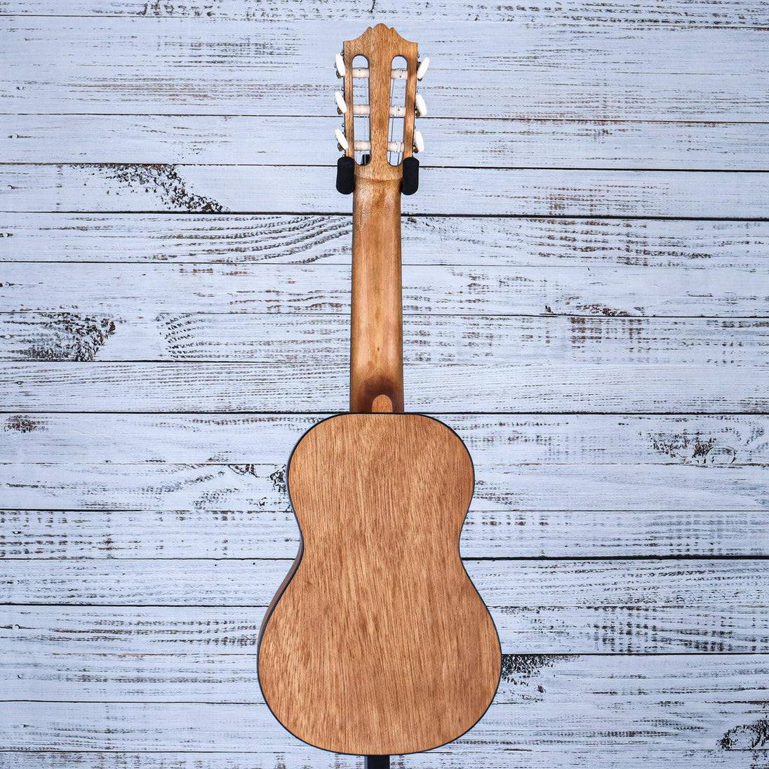 Half guitar, half ukulele...100% fun! This unique, mini 6-string, nylon guitar is sized like a baritone ukulele (17" scale) and plays like a standard tune guitar. The GL1 is pitched up to "A" (or up a 4th) at A/D/G/C/E/A and includes a gig bag for portability.