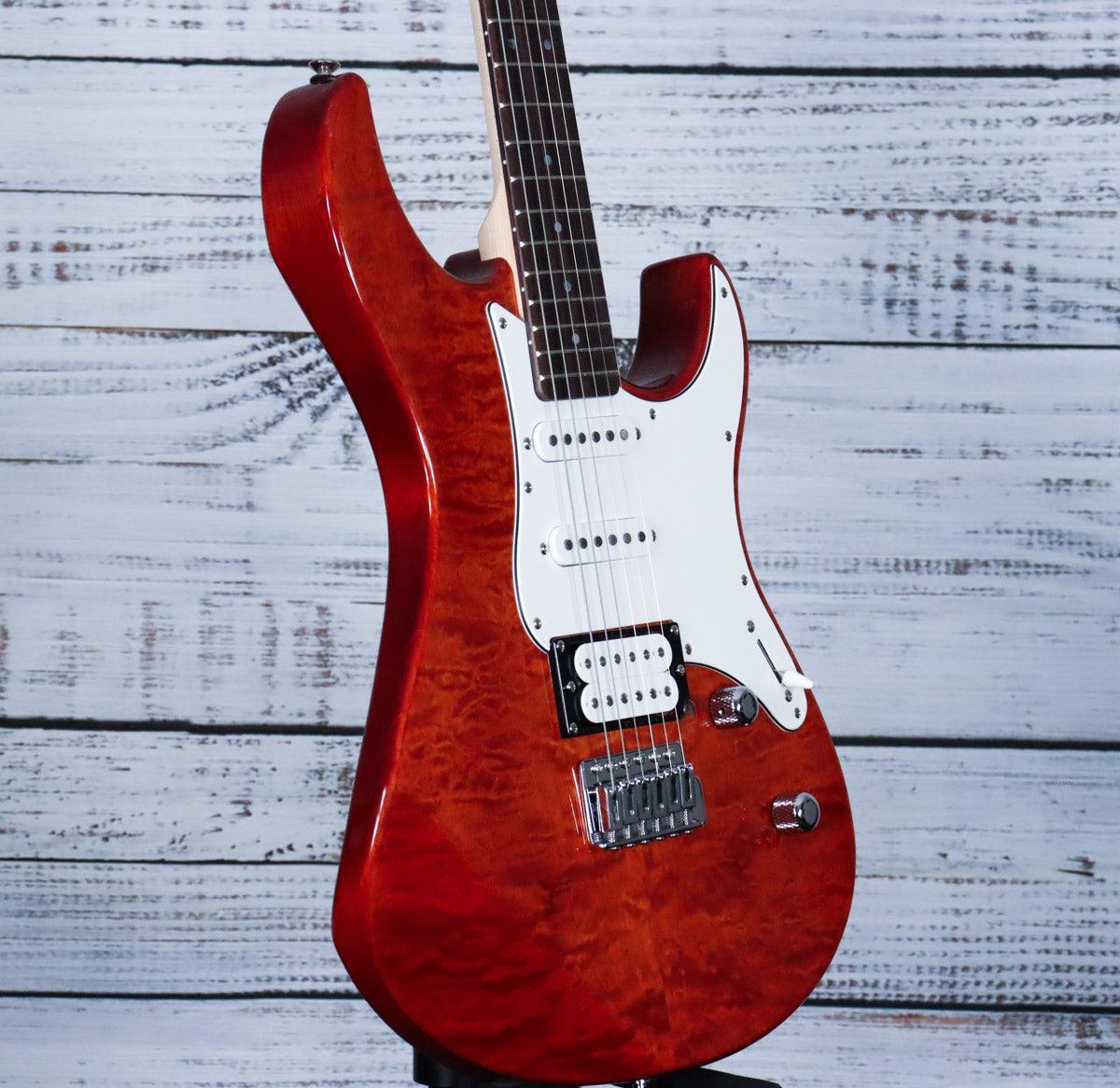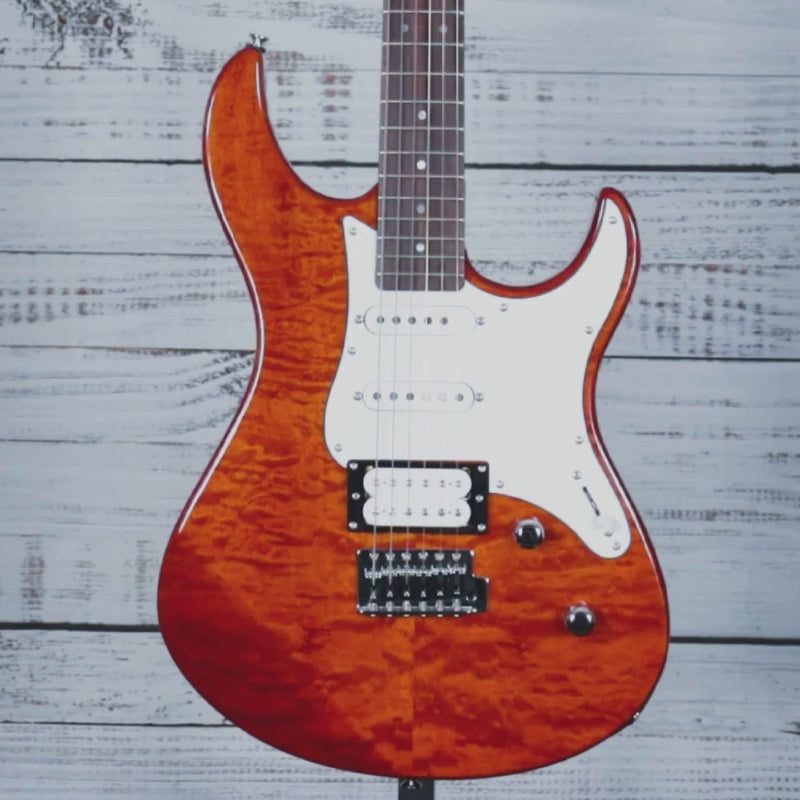 The Yamaha Pacifica PAC212VQM combines stunning flame maple top aesthetics with versatile sound options. Featuring a humbucker and two single-coil pickups with push-pull coil-splitting, it effortlessly delivers a range of tones from warm, full-bodied to crisp and bright. The vintage-style vibrato adds expressive playability, making this guitar ideal for any style or setting. Eye-catching and versatile, the Pacifica 212 is perfect for players seeking both exceptional looks and dynamic sound.