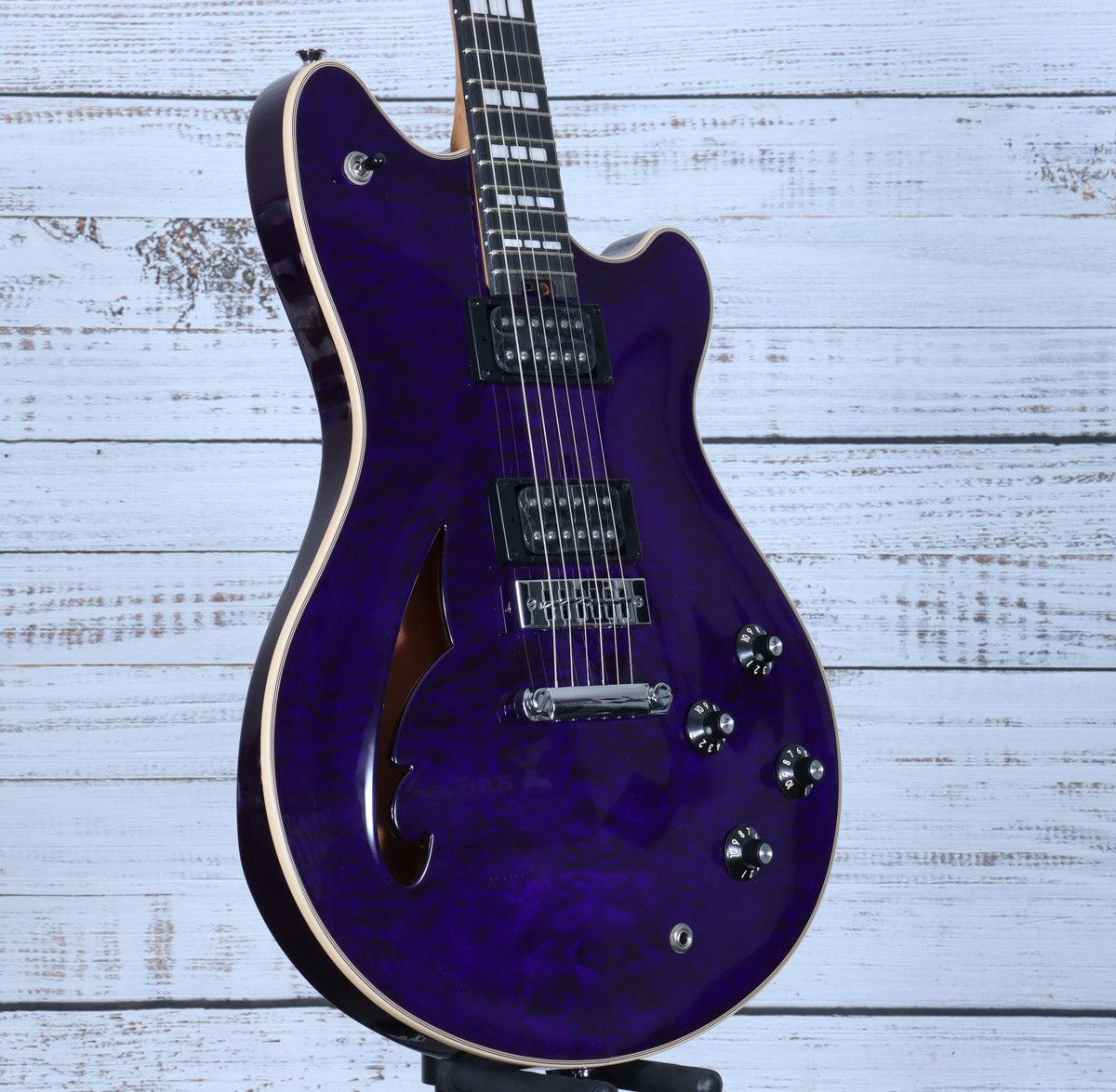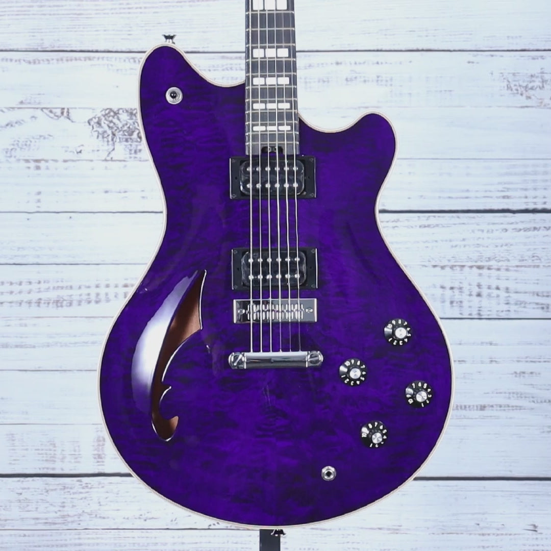 - Available in Tobacco Burst with gold hardware and Transparent Purple