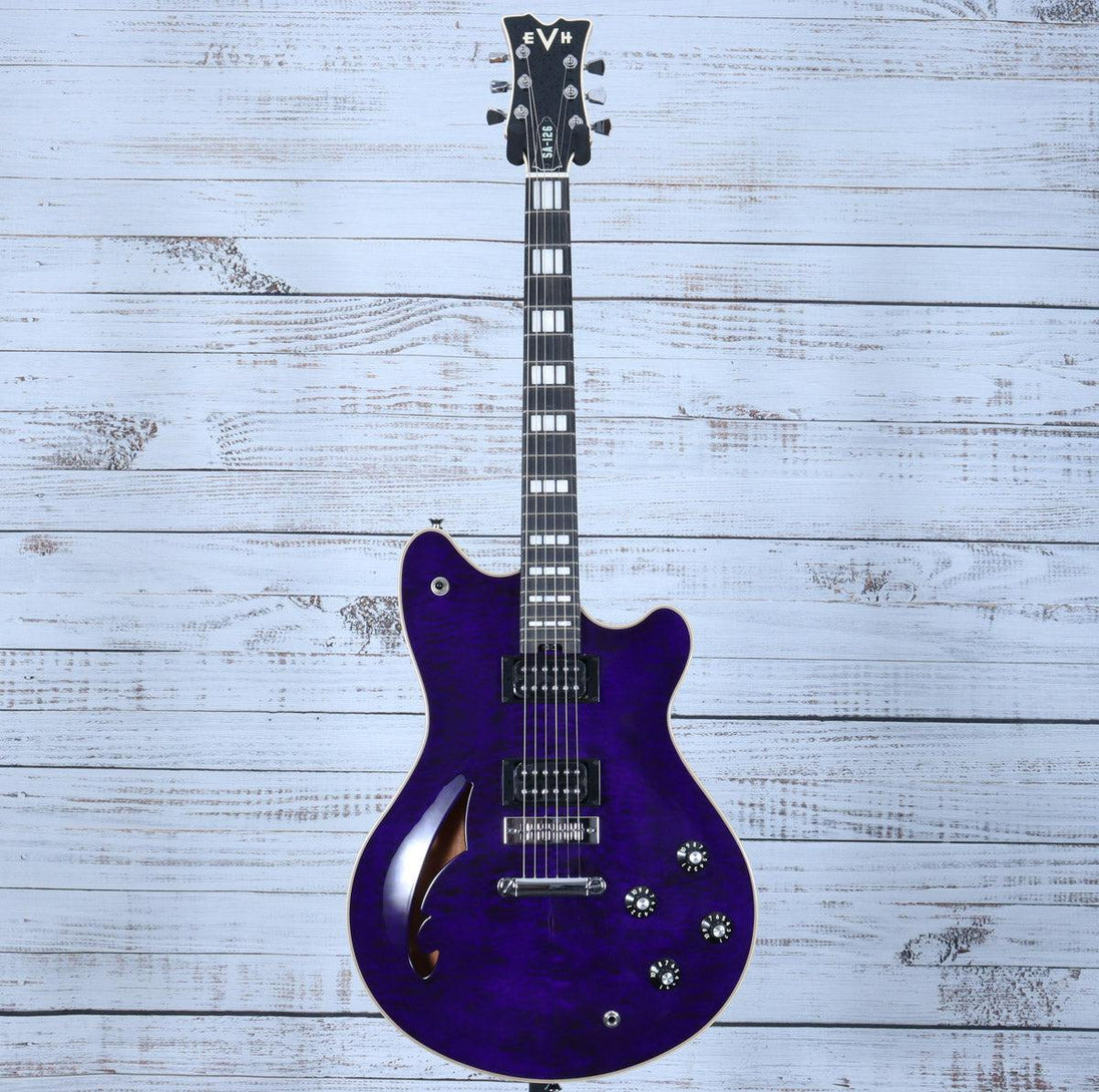 The EVH SA-126 Special is expertly crafted with a hybrid design, combining elements of both semi-hollow and solid body guitars. Its innovative design includes chambered/center block solid body construction, a bolt-on neck, slim profile, jumbo frets, and high output pickups, resulting in a versatile instrument with the perfect balance of power and speed. Developed by industry expert Wolfgang Van Halen, this guitar offers a blend of heavy rhythm tones and lightning-fast lead capabilities.