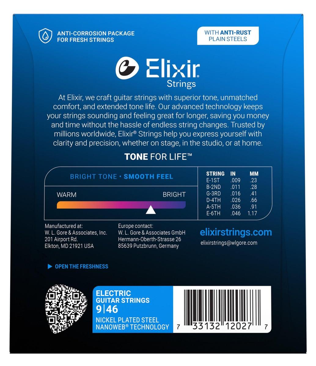 Play for longer without compromising tone and feel with electric guitar strings top-rated by experienced players worldwide. Elixir Strings protects the whole string - not only the outer string surface but also the gaps between the windings where dirt, sweat and gunk build up killing your tone. Anti-Rust Plating protects the plain steel strings ensuring long-lasting tone for the entire set. Elixir Strings retain their out-of-the-box tone longer than any other brand’s strings.