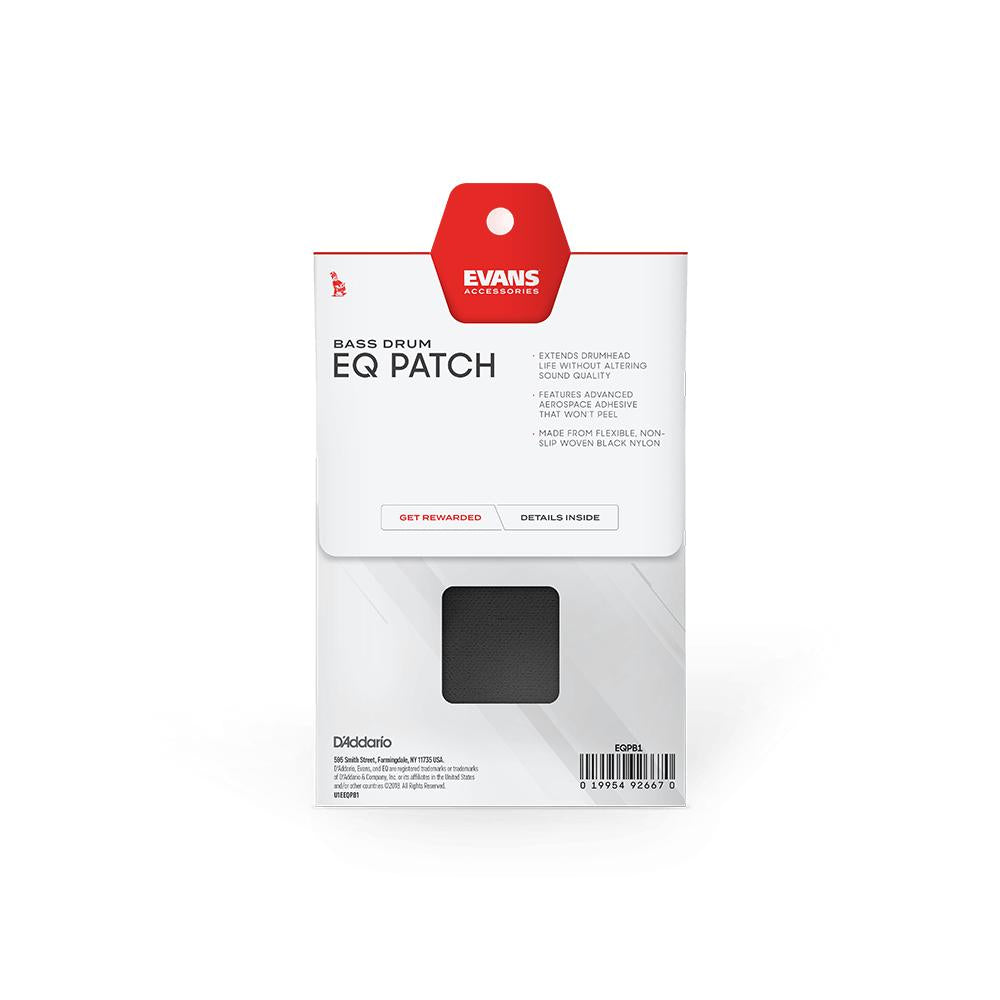 Evans EQPB1 is a black non-slip flexible nylon bass drum patch which increases attack and strengthens the head without affecting sound quality.