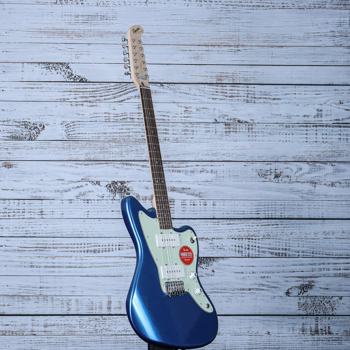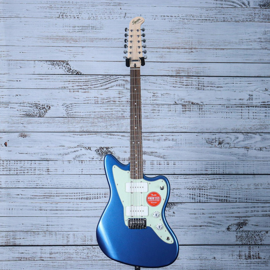 With its iconic offset body shape and rich harmonic character, the Squier® Jazzmaster® XII encourages the most adventurous players to chart a new course of guitar exploration. Featuring dual Fender-Designed alnico single-coil Jazzmaster pickups with 3-way switching and a vintage-inspired “hockey stick” headstock design, this 12-string model doubles down on chime-y tones and timeless style. Other player-friendly details include a graphite-reinforced “C”-shape neck for optimal stability and easy playability, a hybrid string-through-body/top-load bridge for reliable intonation, vintage-style tuning machines for smooth tuning action, and a gloss neck finish for a slick yet confident feel.