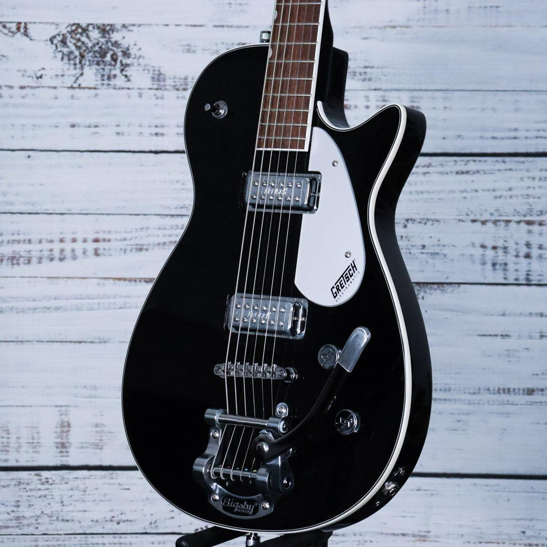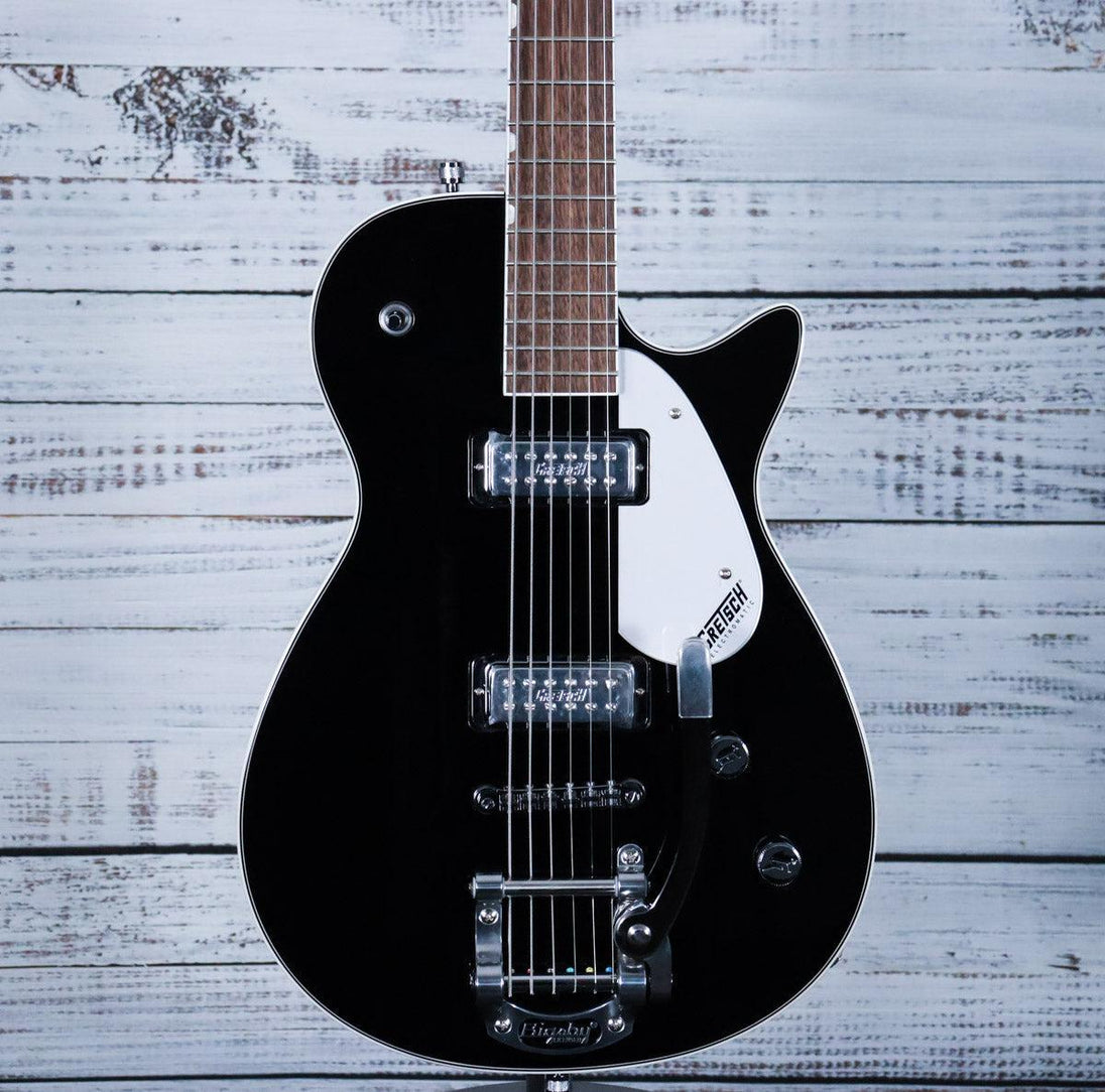 Crafted with unmistakable Gretsch sound, style and playability, the G5260T Electromatic Jet Baritone with Bigsby is available in classic Black with silver pickguard or in a striking Airline Silver finish with black pickguard.