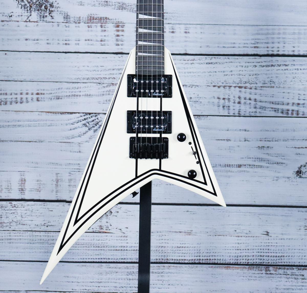 - Available in Snow White with black hardware and Jackson pointed 6-in-line headstock